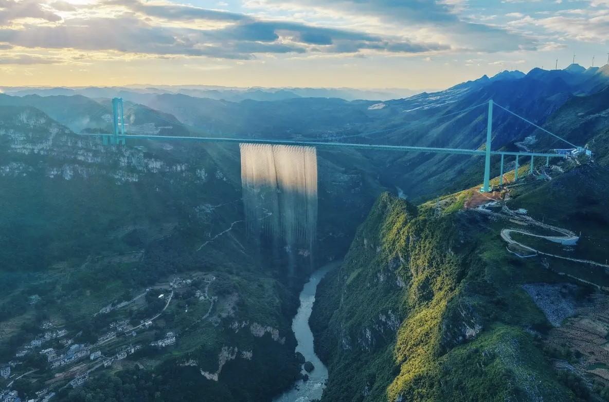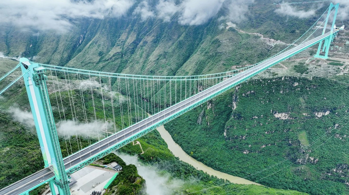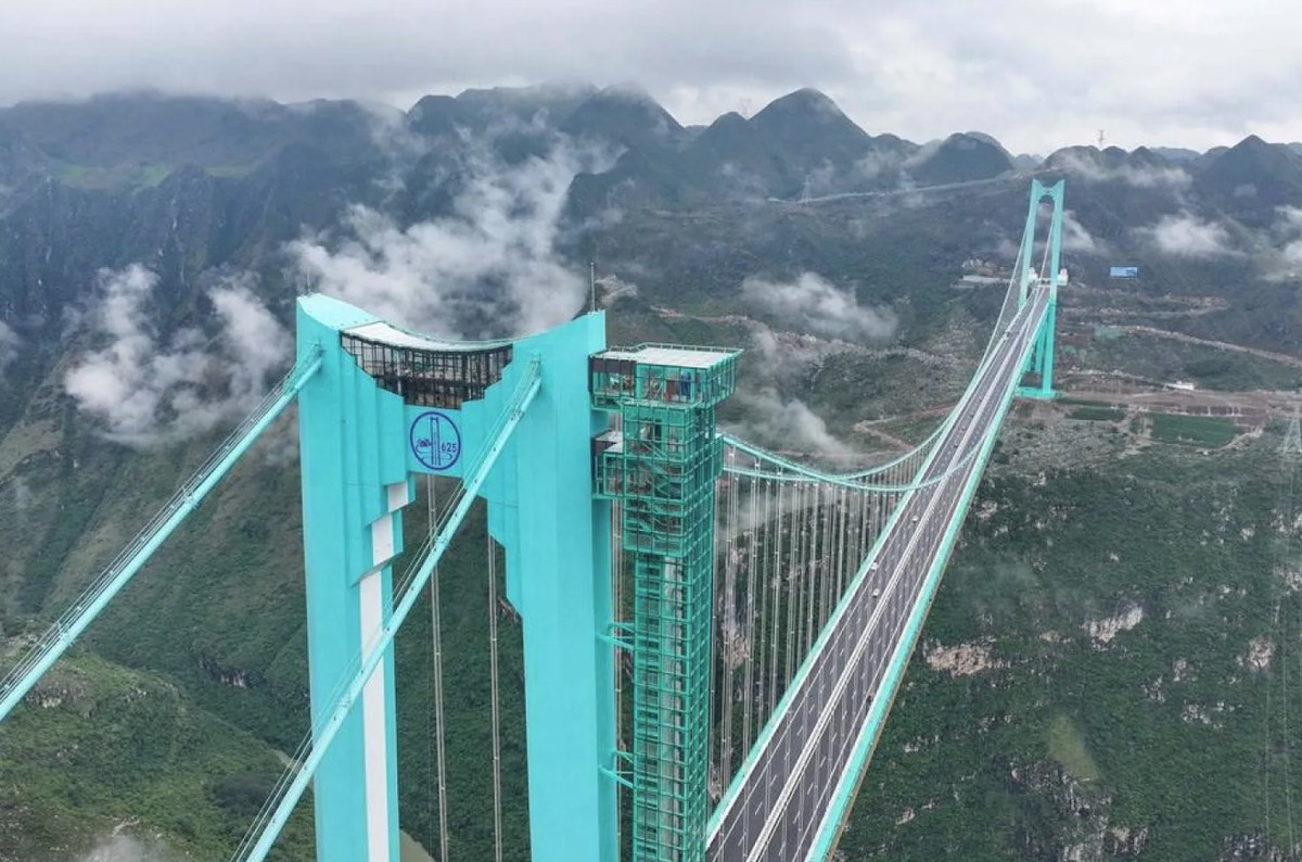Мост над рекой Бэйпань в провинции Гуйчжоу на юго-западе страны является ключевым проектом новой скоростной автомагистрали, соединяющей особый район Лючжи города Люпаньшуй с уездом Аньлун. Длина главного пролета составляет 1420 метров. Ввод в эксплуатацию этого сооружения позволит автомобилистам пересекать каньон всего за пару минут. Прежде на решение задачи уходило до двух часов.