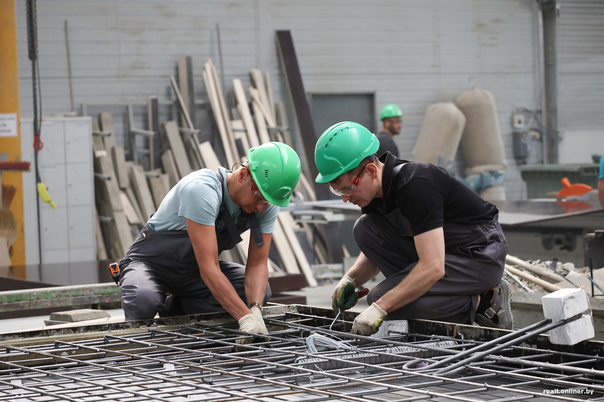 Начинается все так: рабочие вручную создают скелет будущей стены. Арматура скрепляется с помощью вязки, а не сварки. Новый способ заимствован у европейских коллег и является более экологичным.