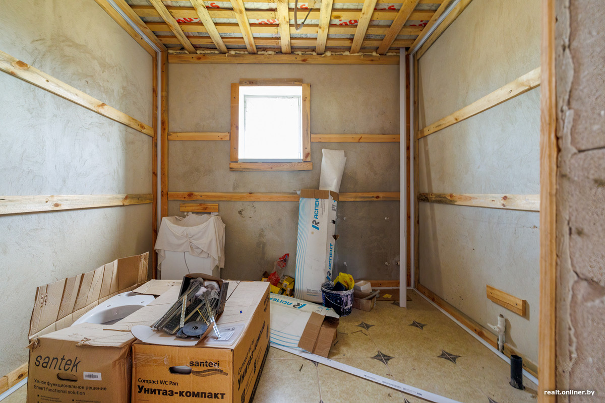 А по факту не выполнены глобальные этапы: не до конца утеплена кровля, не подведена вода (в смете этого нет, но на словах Александр пообещал выполнить в качестве подарка), соответственно, нет и отопления, оно даже толком не разведено по дому. Не выполнена чистовая электрика, не собран щиток, не приобретен и не установлен счетчик, нет заземления. Не установлена сантехника. Санузел не обшит сайдингом, не установлены межкомнатные двери. Про сарай я вообще молчу: там ни окон, ни дверей, ни толковой крыши. А ведь за все заплачено.