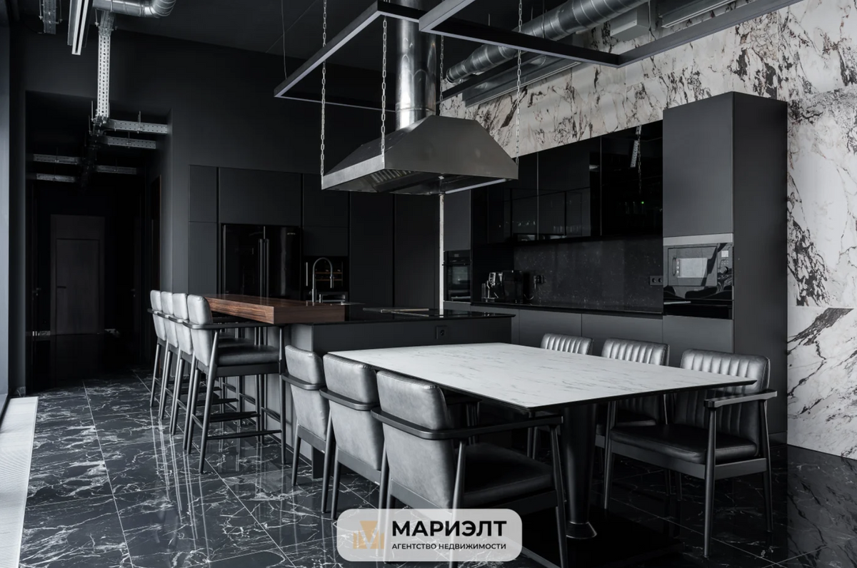 Зона кухни просторная. Находясь на ней, тоже можно лицезреть уличные пейзажи через окна в пол.