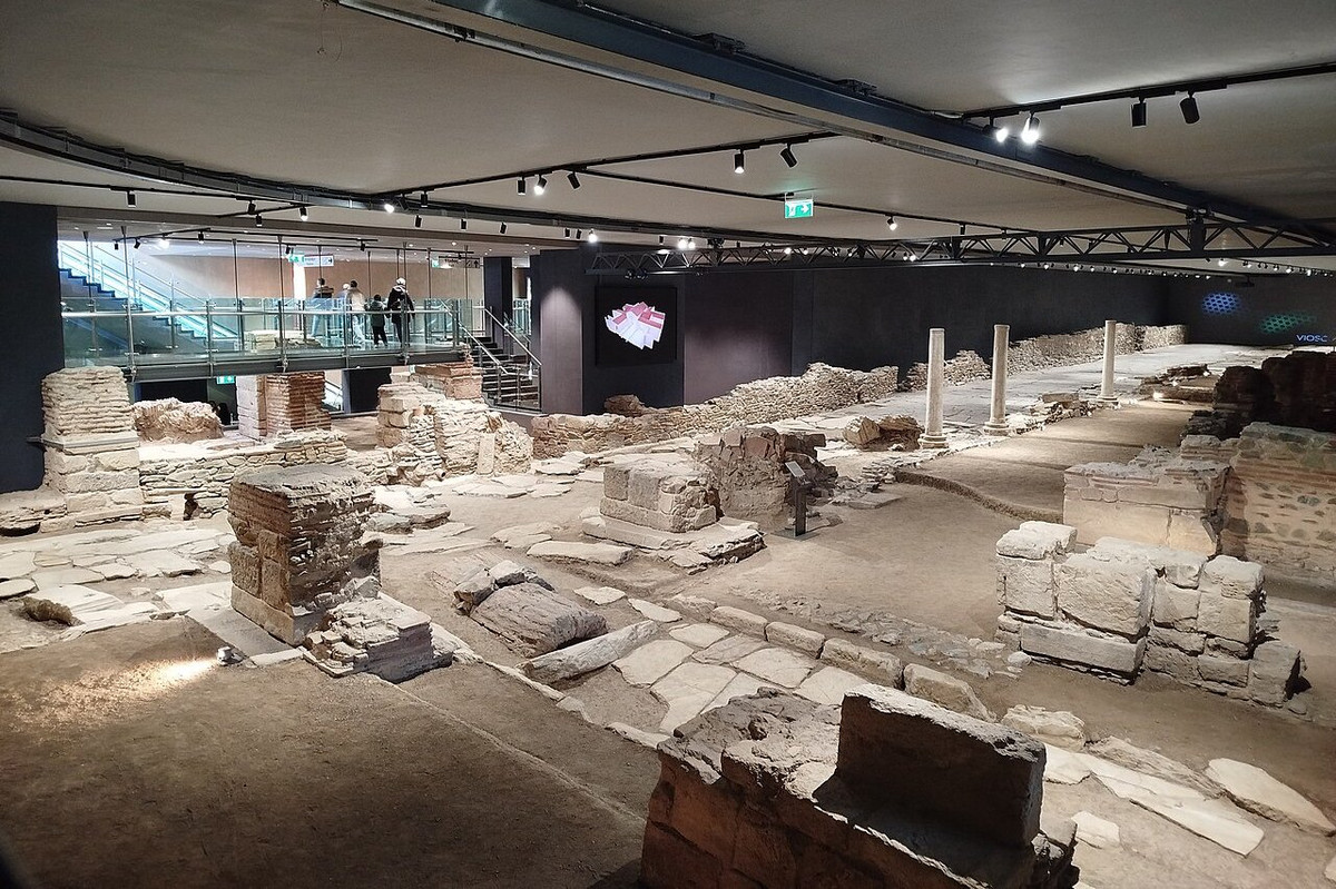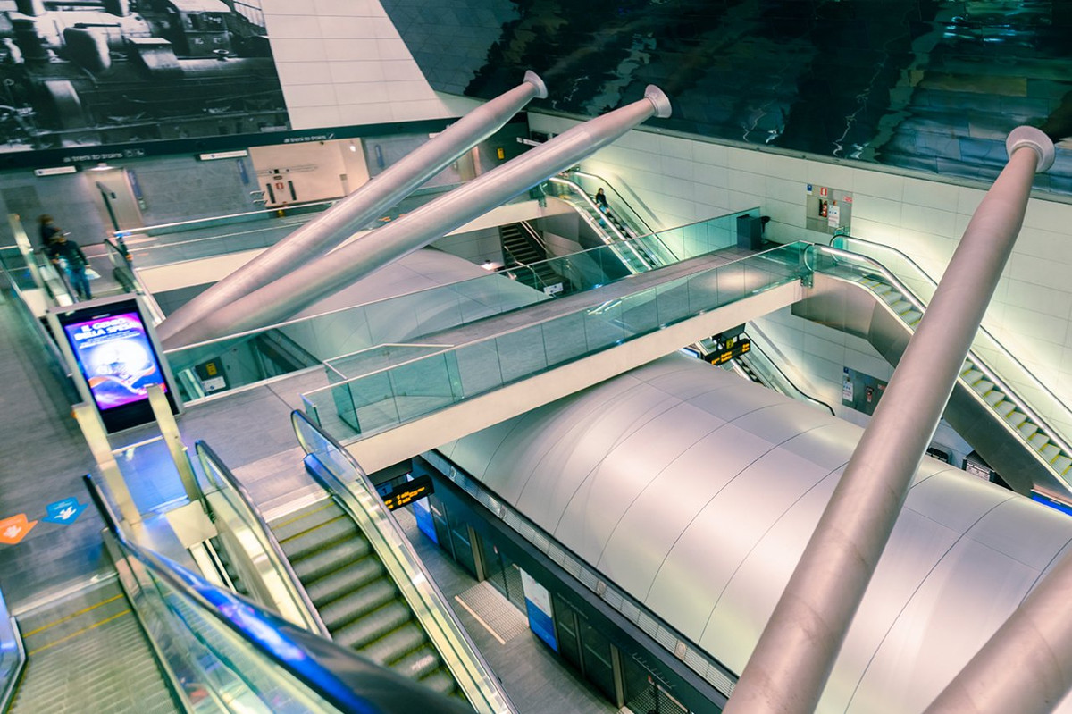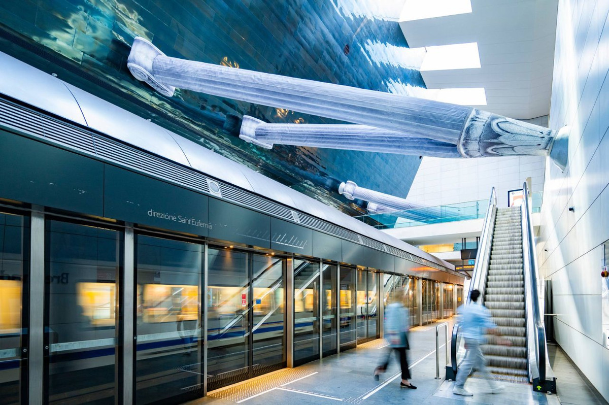 Станции — светлые, просторные, с прозрачными перегородками. Но главное — они не отрываются от города: мозаики, колонны, фрагменты древних улиц, найденные при раскопках, стали частью оформления. Это метро, но с неожиданным дополнением — немного музей, немного прогулка по истории. И все это между привычными поездками на работу и обратно.