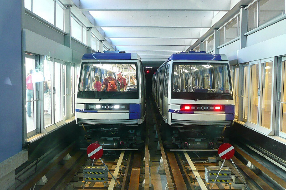 Станции — функциональные: бетон, стекло, металл. А поезда — что-то вроде гибрида метро и трамвая — легкие, на резиновых шинах, с максимальной скоростью 70 км/ч и интервалами от 6 до 10 минут.