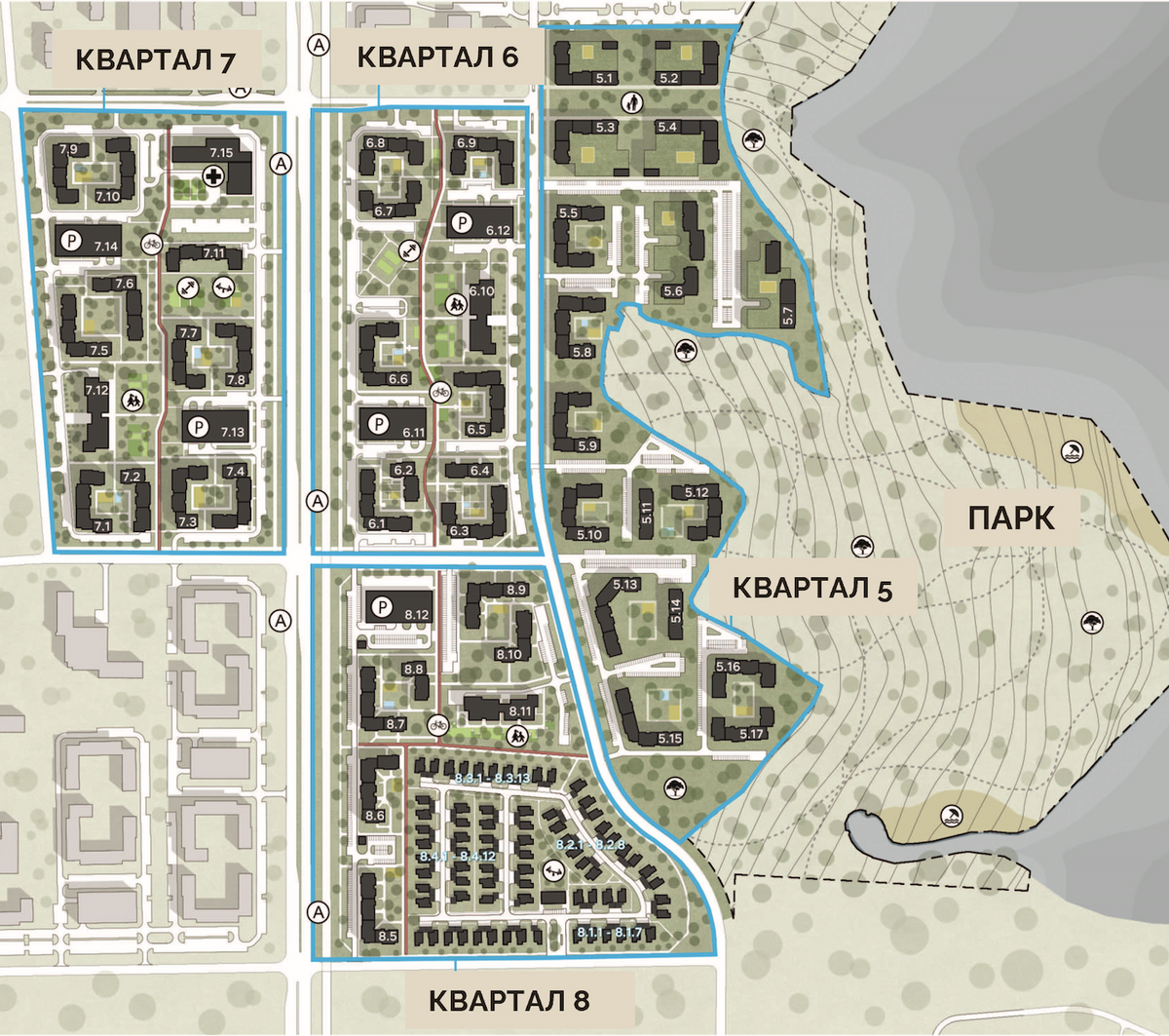 — Начнем с шестого и седьмого кварталов, потом подключим пятый, который разместится на первой береговой линии и будет застроен премиальным жильем, — объясняет Антон Русакевич. — Мы, как и ранее, будем придерживаться концепции малоэтажной застройки: шесть-десять этажей. Дома-доминанты разместим ближе к улице Карастояновой. Очень интересным будет восьмой квартал. В нем появятся не только дома стандартной для нас высоты, но и по-настоящему малоэтажные.