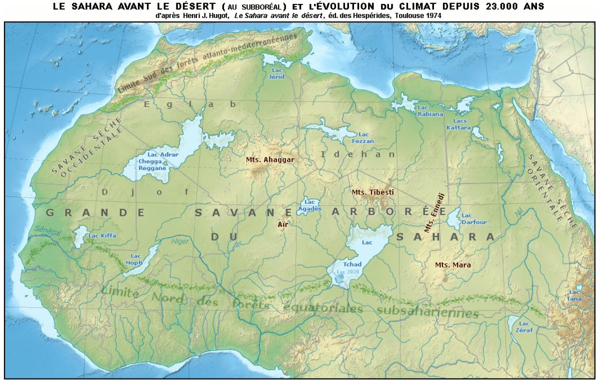 Например, во время максимального последнего оледенения 26—20 тысяч лет назад пустыня была существенно крупнее текущей. Граница аридной, засушливой зоны проходила на 500—800 километров южнее, чем сейчас. Озеро Виктория, крупнейшее из Великих Африканских озер, находилось в пересохшем состоянии, а Белый Нил являлся сезонной рекой. По сравнению с нынешним состоянием дел, в Африке жить было гораздо хуже.