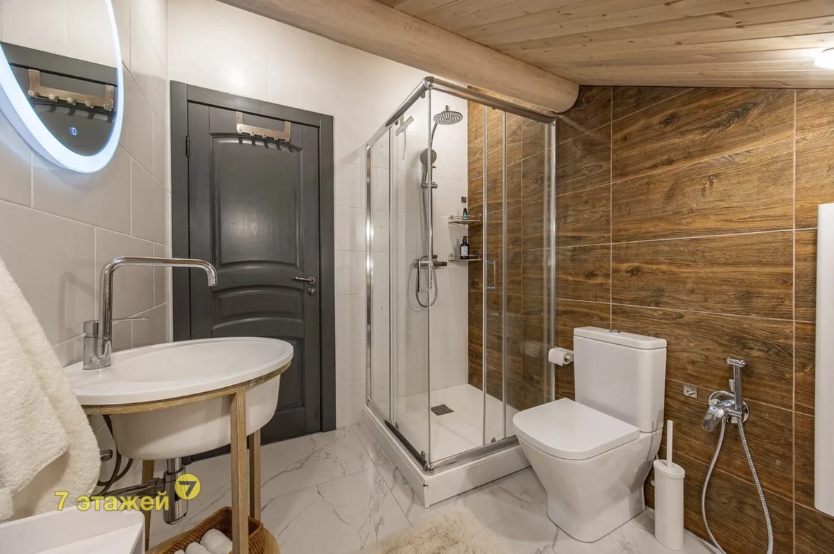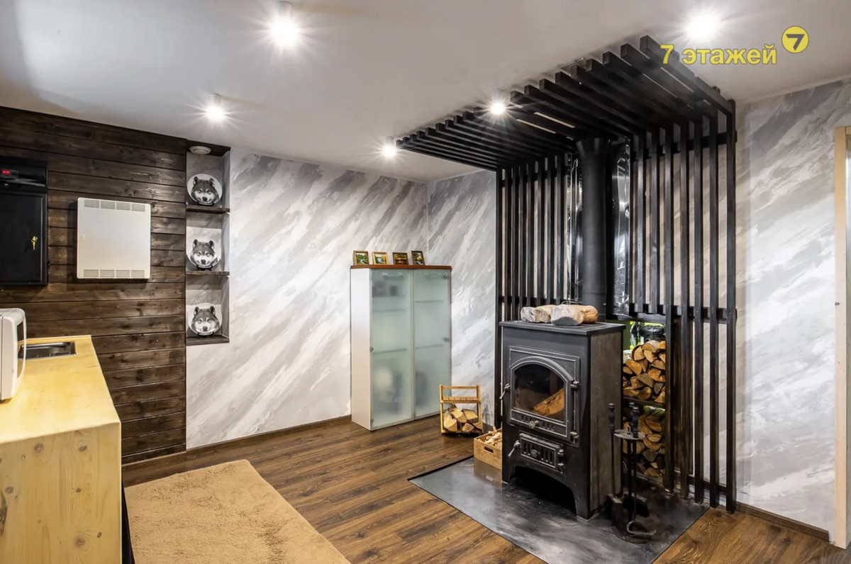 Дом площадью 160 «квадратов» находится в садовом товариществе «Заценьский родник». Расположение у него суперудачное — пять минут от Минска, до кольцевой дороги рукой подать. И, что важно, этот красавец появился на свет совсем недавно: работы здесь были завершены в 2025 году. Владельцы решили, что хотят видеть красоту не только в стенах дома, но и снаружи, поэтому облагородили участок с помощью аккуратного газона и зеленых насаждений. Привлекает внимание бассейн — жаль, что сейчас его придется прикрыть и ждать теплых деньков. Рядом с бассейном стоит небольшая баня.