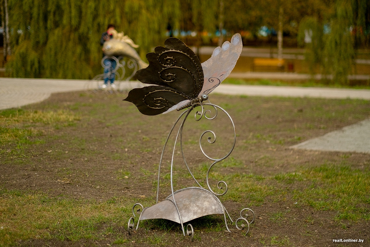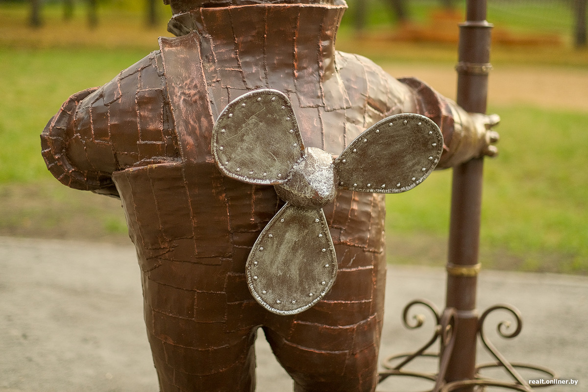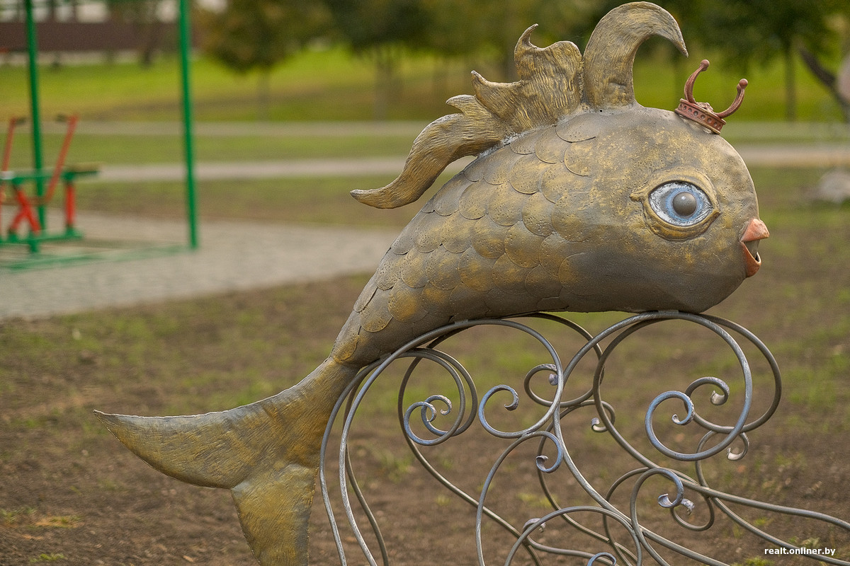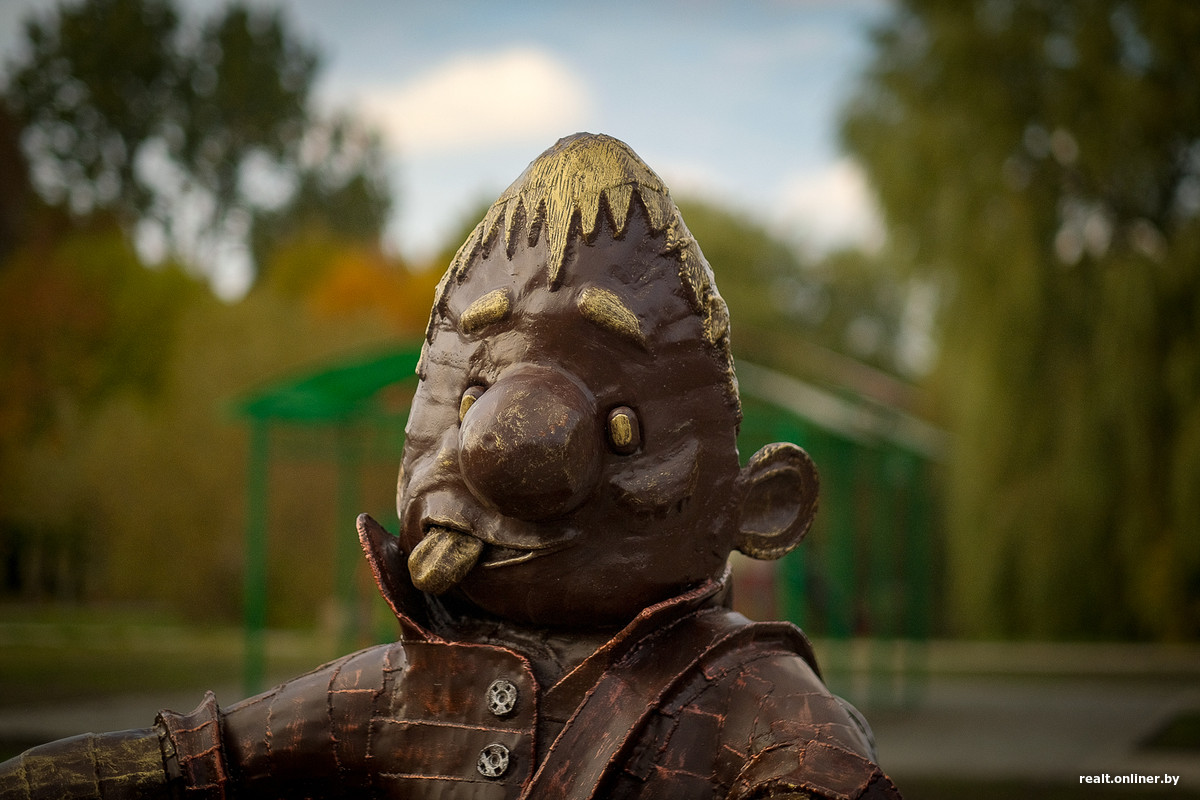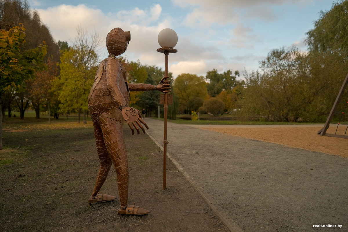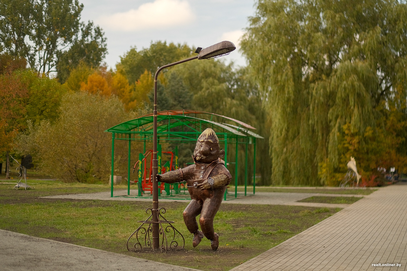 Свой кусочек Слепянской водной системы, взрослые деревья, дорожки вдоль воды. Место приятное и тихое. А с недавних пор еще и довольно необычное: парк не только облагородили, но и украсили скульптурами. Весьма яркими и своеобразными. Раньше пальму первенства в категории необычности держали фигуры, установленные на Мухле. Теперь у них появились гротескные друзья из металла и дерева в Ленинском районе.
