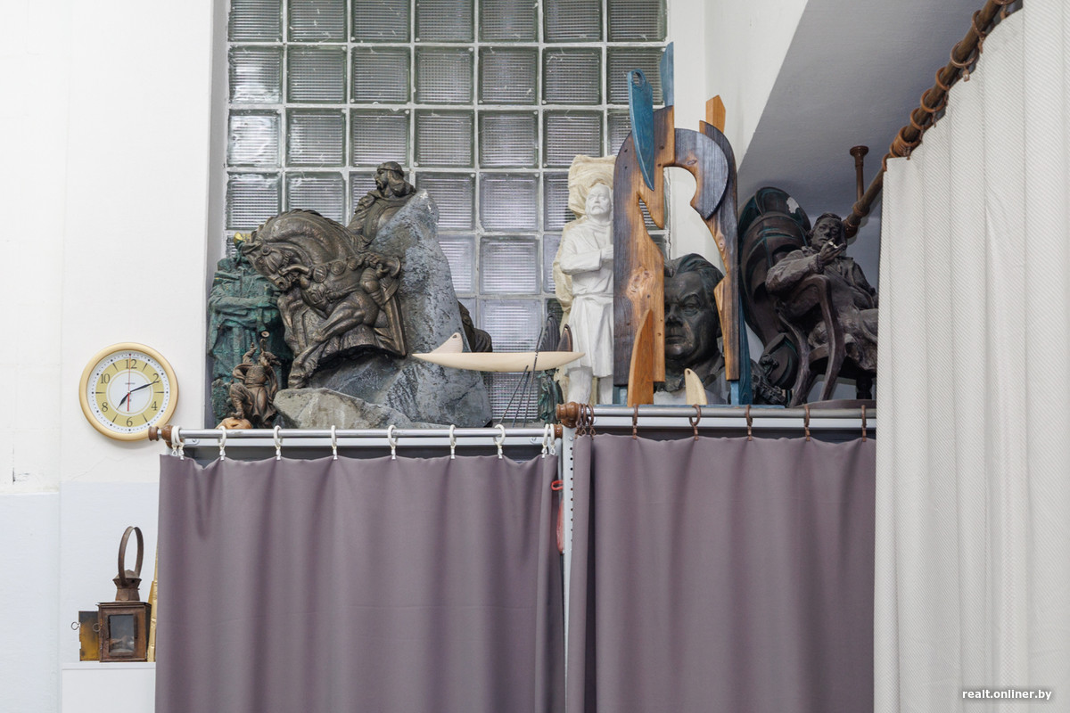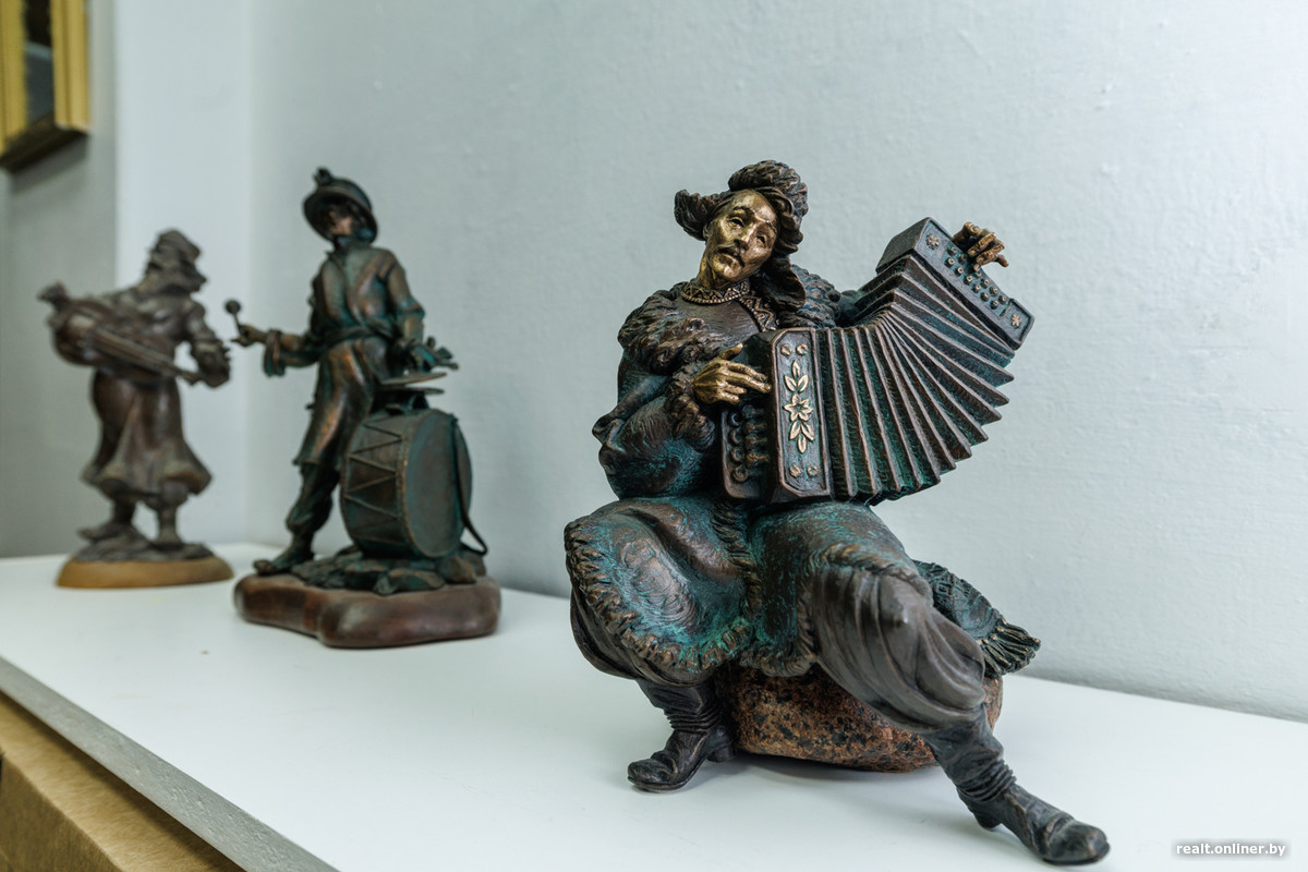— Скульптура можа быць ювелірнай, станкавай (якую можна паставіць на стол ці ўпісаць у інтэр’ер) і манументальнай. Манументальная работы у майстэрнях «Дома мастака» не шукайце, — проводит экскурсию по своему второму дому Алесь Шатило. — Яны вырабляюцца на спецыяльным прадпрыемстве, якое мае цэхі з вышынёй столі восем метраў. Максімум, што можна зрабіць тут, — 3-метровую работу.