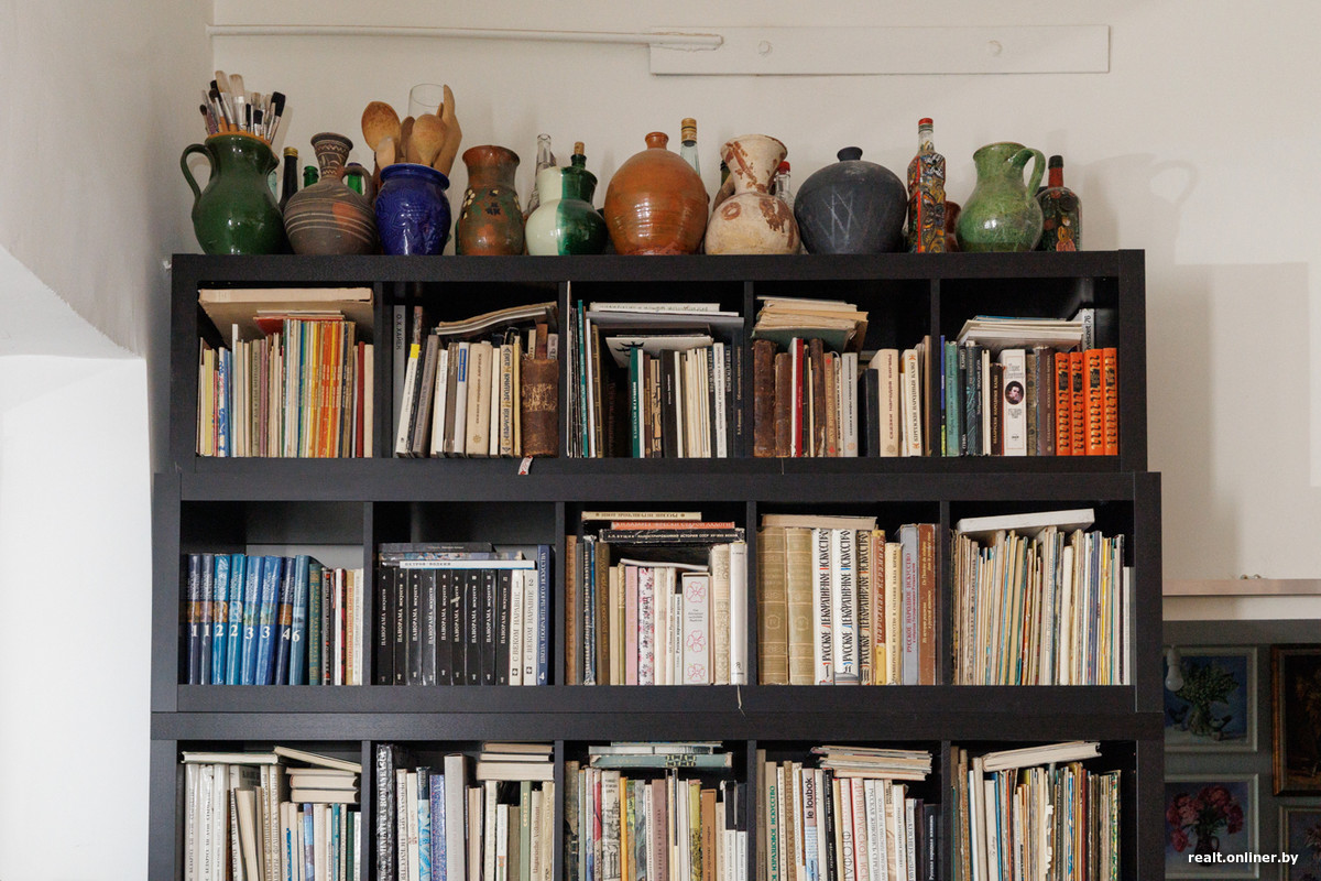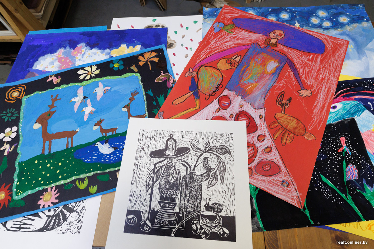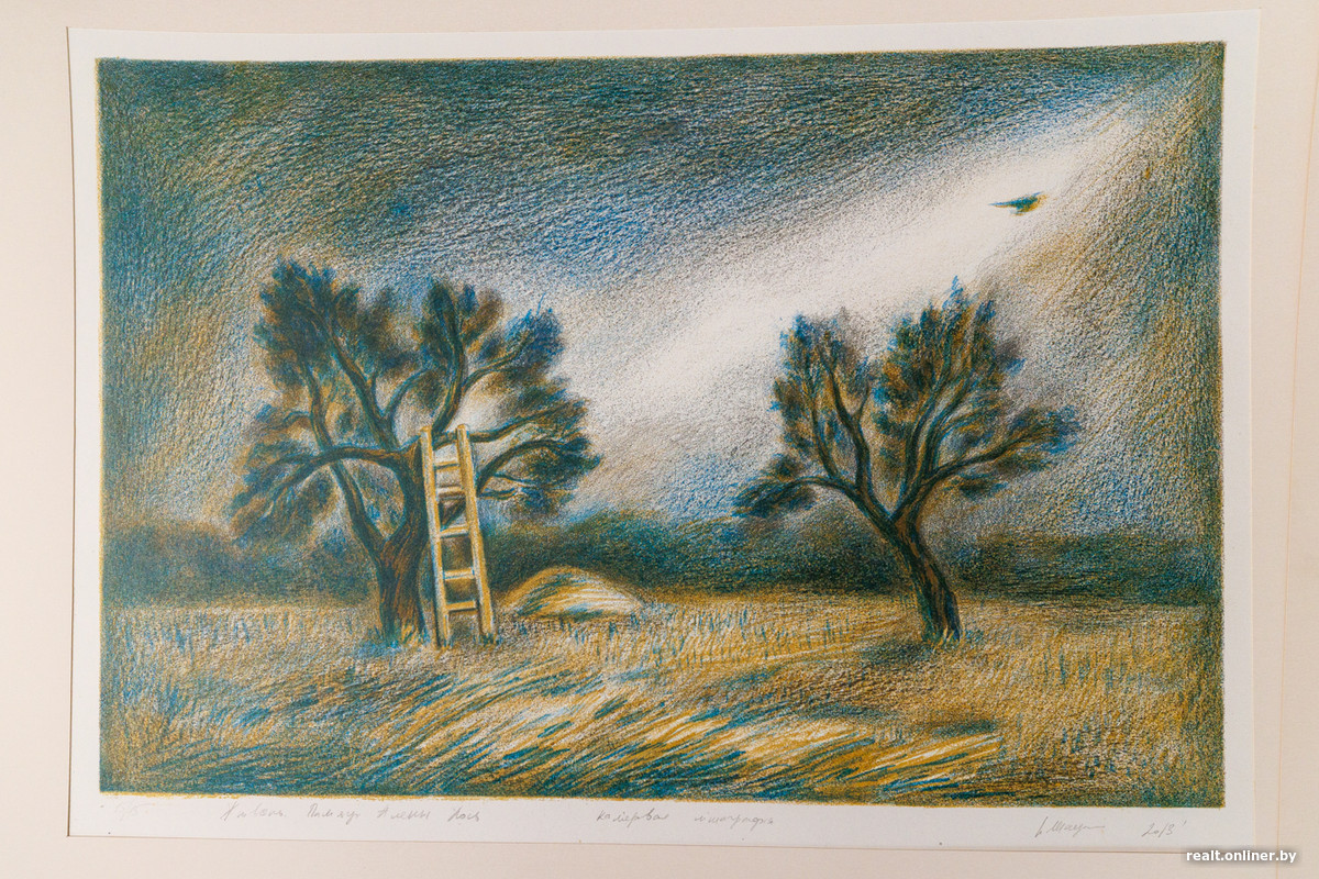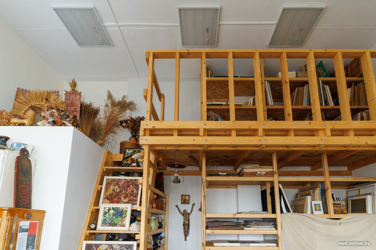— Для мастака творчая майстэрня — гэта другі дом. Калі не першы. Усё духоўнае жыцце праходзіць тут, усе скарбы захоўваюцца тут. Вялікае шчасце, што яны належаць Саюзу мастакоў, а не людзям. Канешне, кожнаму з нас хацелася б, каб гэта была ўласная маёмасць, але тады б майстэрні праз некаторы час скончыліся і ніхто з новых (ды і ўжо паважных майстроў) не змог бы на іх разлічваць, — говорит Юлия и в первую очередь показывает нам работы своей наставницы Алены Лось, которой раньше и принадлежала эта мастерская.