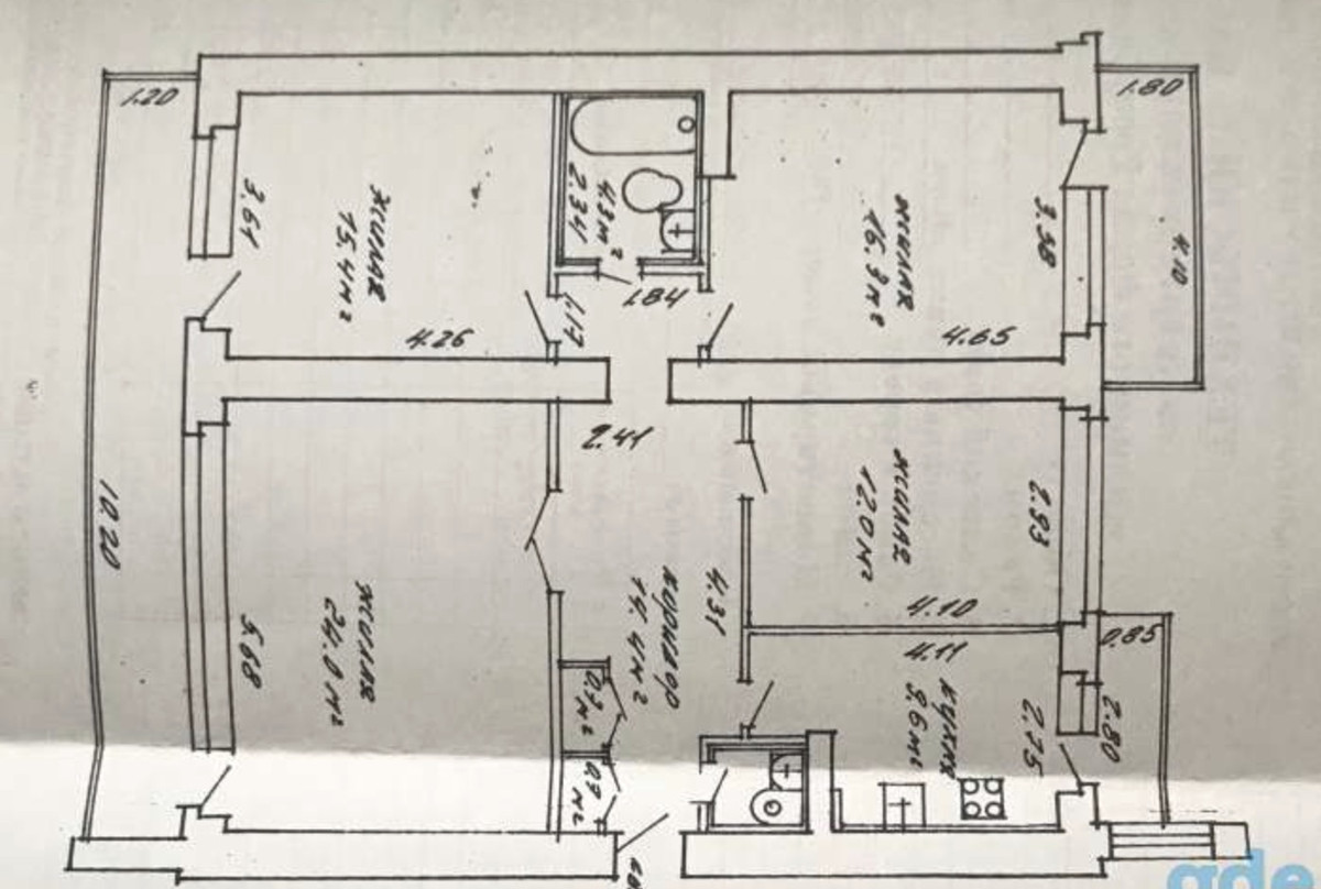 Так выглядит типовая 4-комнатная квартира в «Доме художников». Продумано все (учтите, что на дворе середина 1970-х): гостевой санузел при входе и основной в глубине квартиры; все комнаты раздельные; кухня — приличные 9,6 метра, с собственным балконом. Самый шик, конечно, это гостиная — 24 метра, с огромным окном и сквозной, на две комнаты, лоджией. Встроенные шкафы, паркет елочкой, бумажные обои и побеленные потолки прилагались.