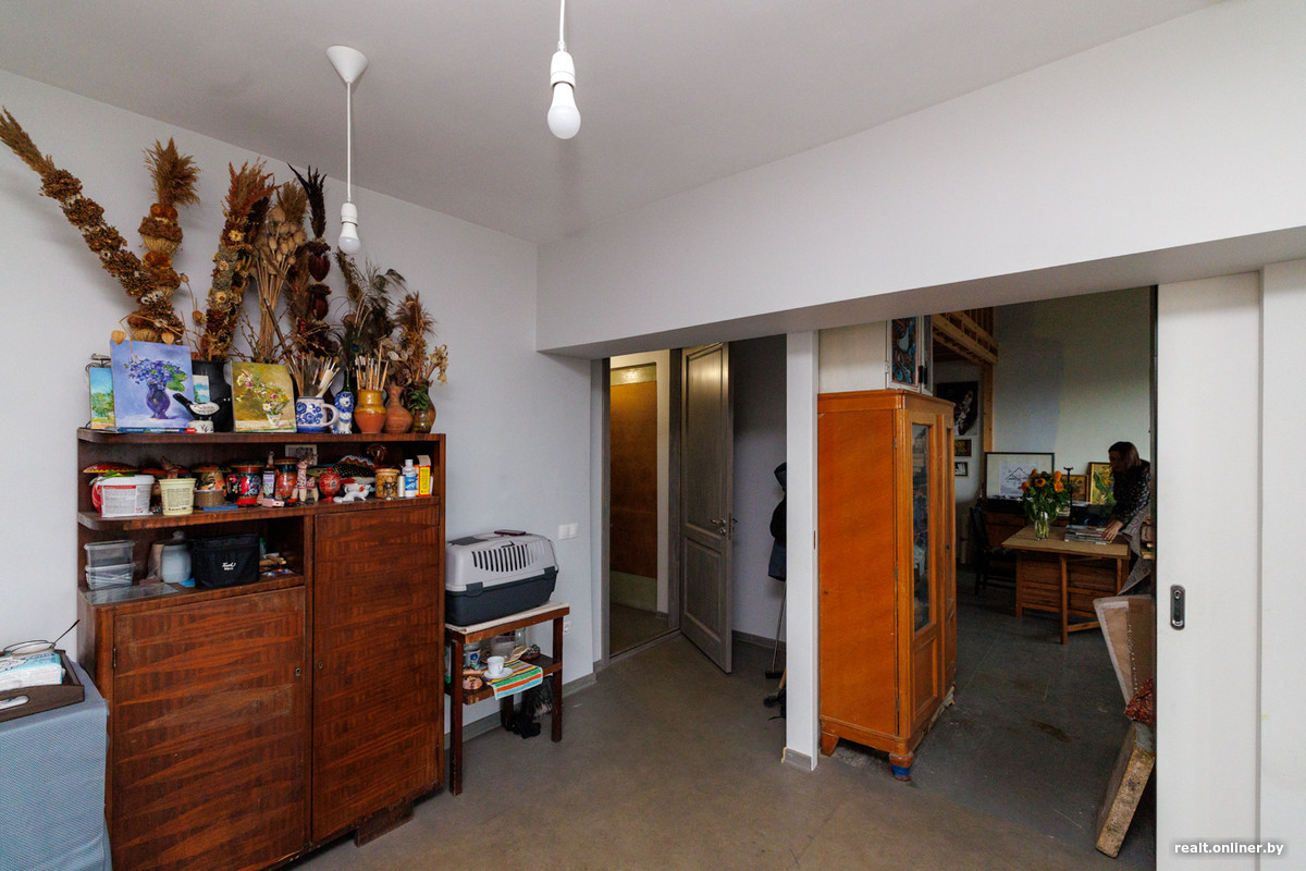 42-й по счету дом на улице Сурганова знают, кажется, все минчане. Построенный в 1976 году, он был предметом зависти горожан: светлые и просторные подъезды, огромные (даже по нынешним меркам) квартиры с раздельным санузлом, минимум соседей. Ничего общего с однотипными панельками и брежневками, которые «светили» большинству советских граждан. С учетом всех вводных можно было бы подумать, что кирпичная девятиэтажка, возведенная по индивидуальному проекту, относится к разряду номенклатурных домов. Но нет, заселили в 100-метровые квартиры не партработников и не руководителей предприятий, а… художников. Здесь же, в доме, для них предусмотрели мастерские, чтобы погруженным в творчество живописцам и скульпторам не надо было тратить время на дорожную суету.