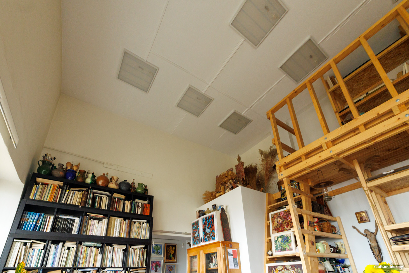 Мастерская, в которой мы сейчас находимся, имеет площадь порядка 42 «квадратов» (это не самый просторный вариант). Потолки здесь 5-метровые.