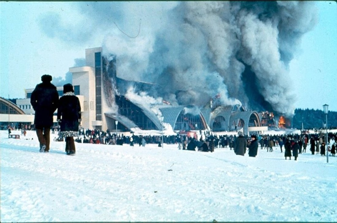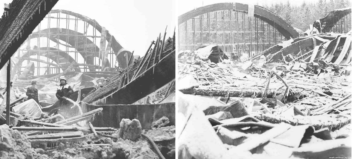 Когда пожарные прибыли на место, манеж уже вовсю полыхал, а сквозняк из выбитых окон создавал настоящий огненный вихрь. Металлические соединения теряли несущую способность, потолок рухнул, но все пожарные успели отойти в безопасное место.
