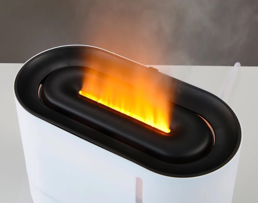 Модель с визуальной «изюминкой» — LED-голограмма, создающая эффект живого пламени. В остальном обычный увлажнитель с сенсорным управлением.