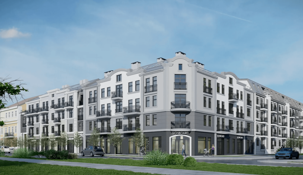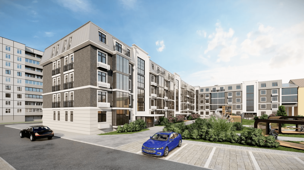 Речь о жилом комплексе «На Машерова». Если коротко: многоквартирный жилой дом состоит из четырех секций и представляет собой четырехэтажное здание Г-образной формы с мансардой. Всего спроектировано 93 квартиры. Покупатели смогут выбирать из студий площадью от 41,20 метра, двухкомнатных от 49,8 метра, трехкомнатных от 88,77 метра и даже просторных четырехкомнатных от 111,88 метра.