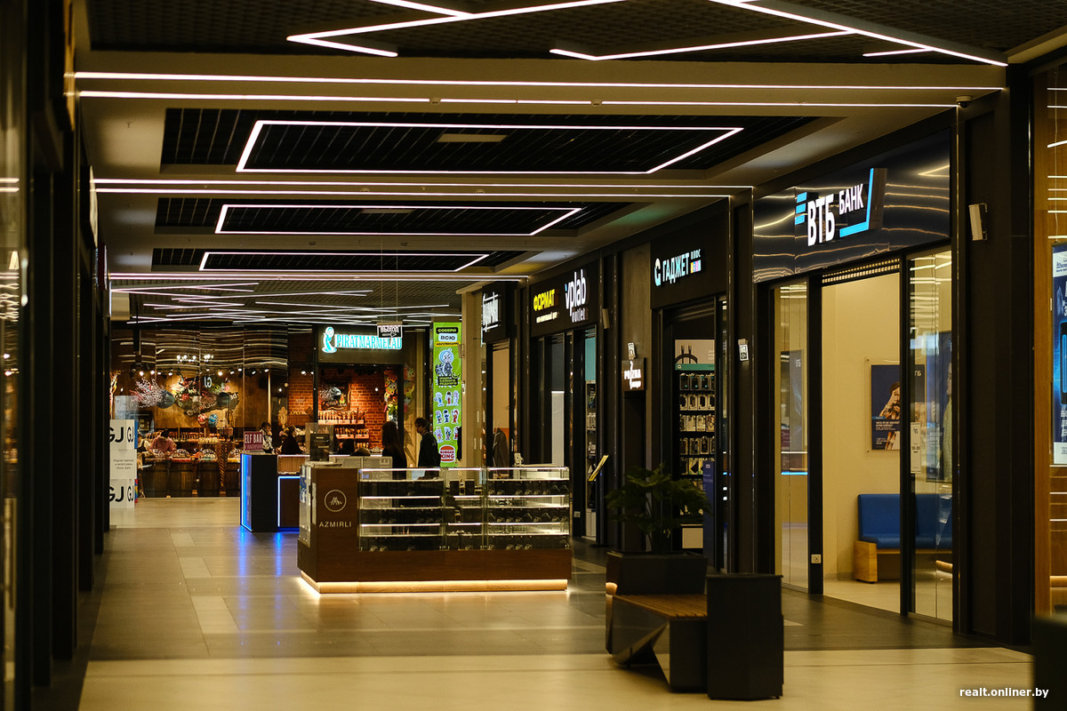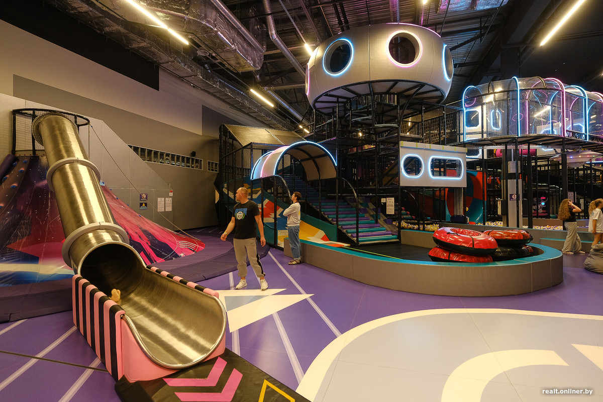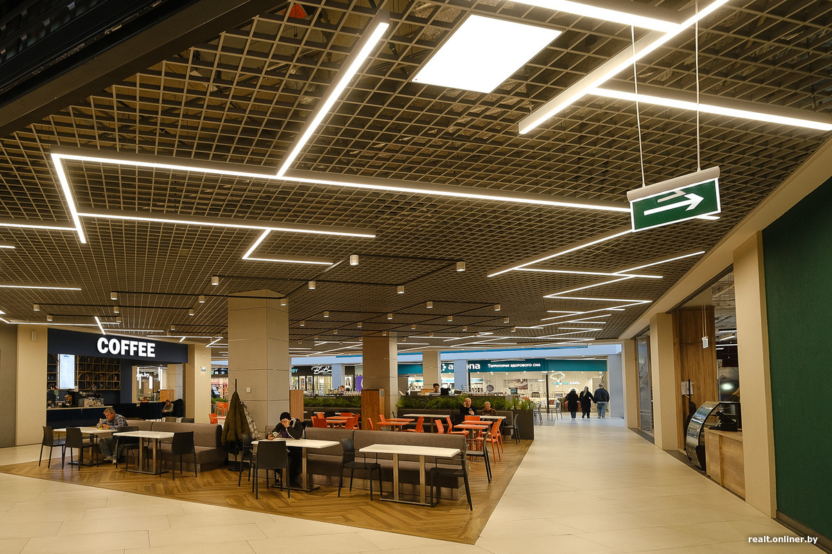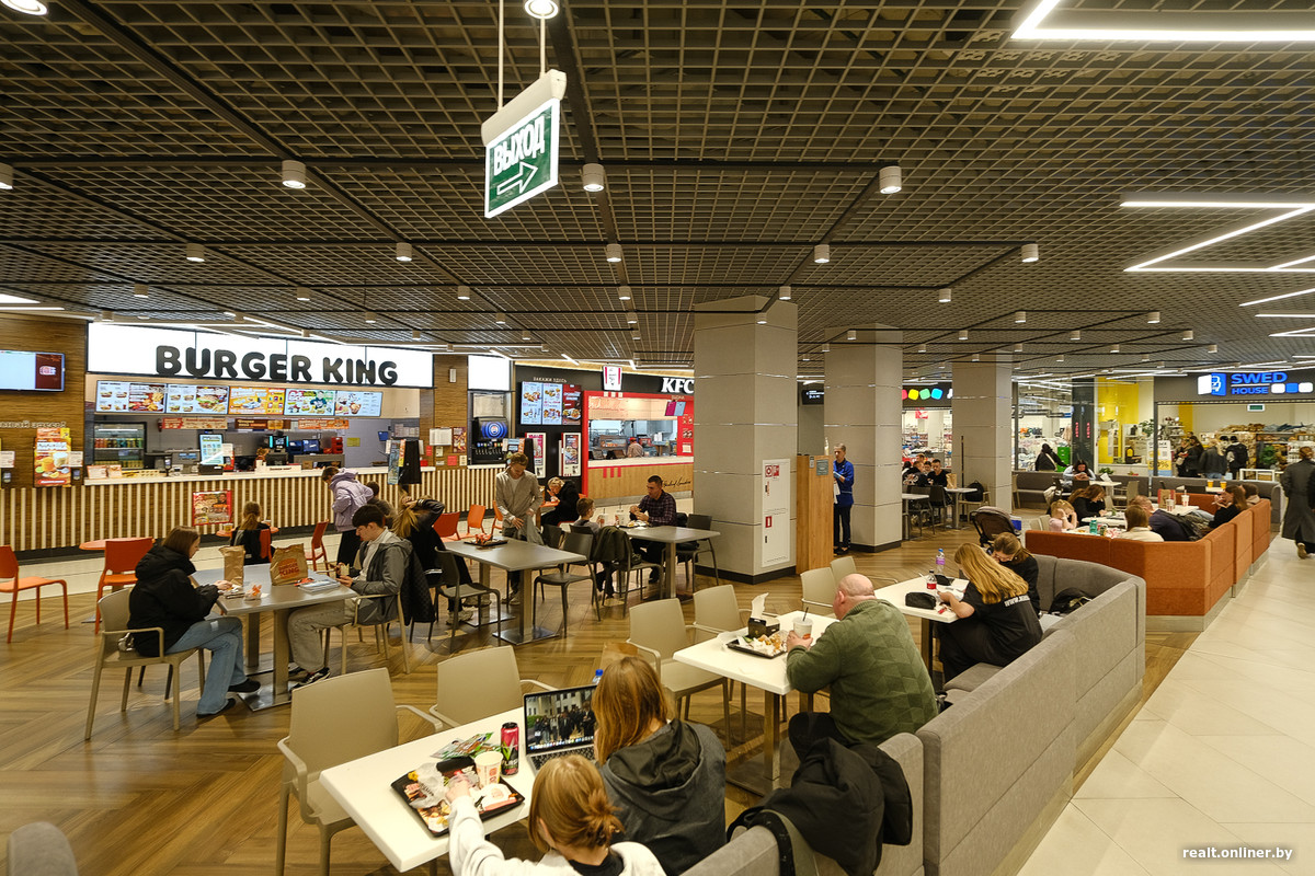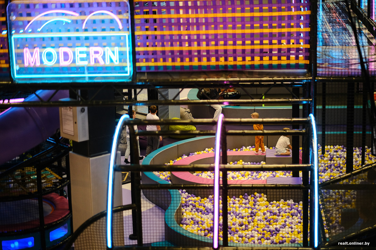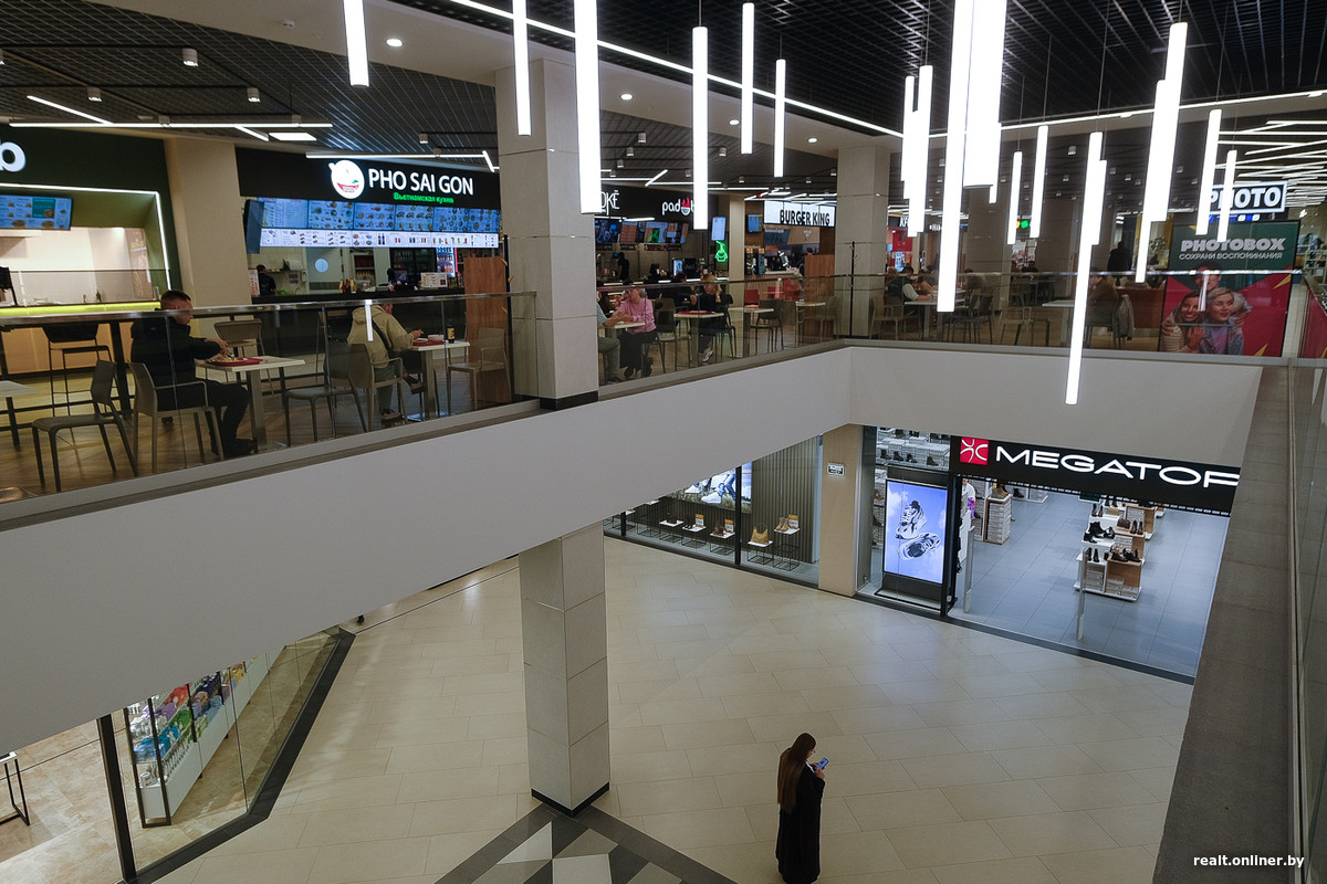 Стройка заняла около четырех лет, и осенью прошлого года торгово-развлекательный корпус открыл свои двери (офисная часть подключилась позже, в феврале 2025-го). Стартовали по традиции с большого «продуктовика» на минусовом уровне, частично заселенного первого этажа, практически пустого второго и «богатого» третьего — там, на самом верху, посетителей ждала зона фудкорта, собственный кинотеатр и крутой активити-парк для детей, равного которому не было (да и вряд ли сейчас есть) в Минске.
