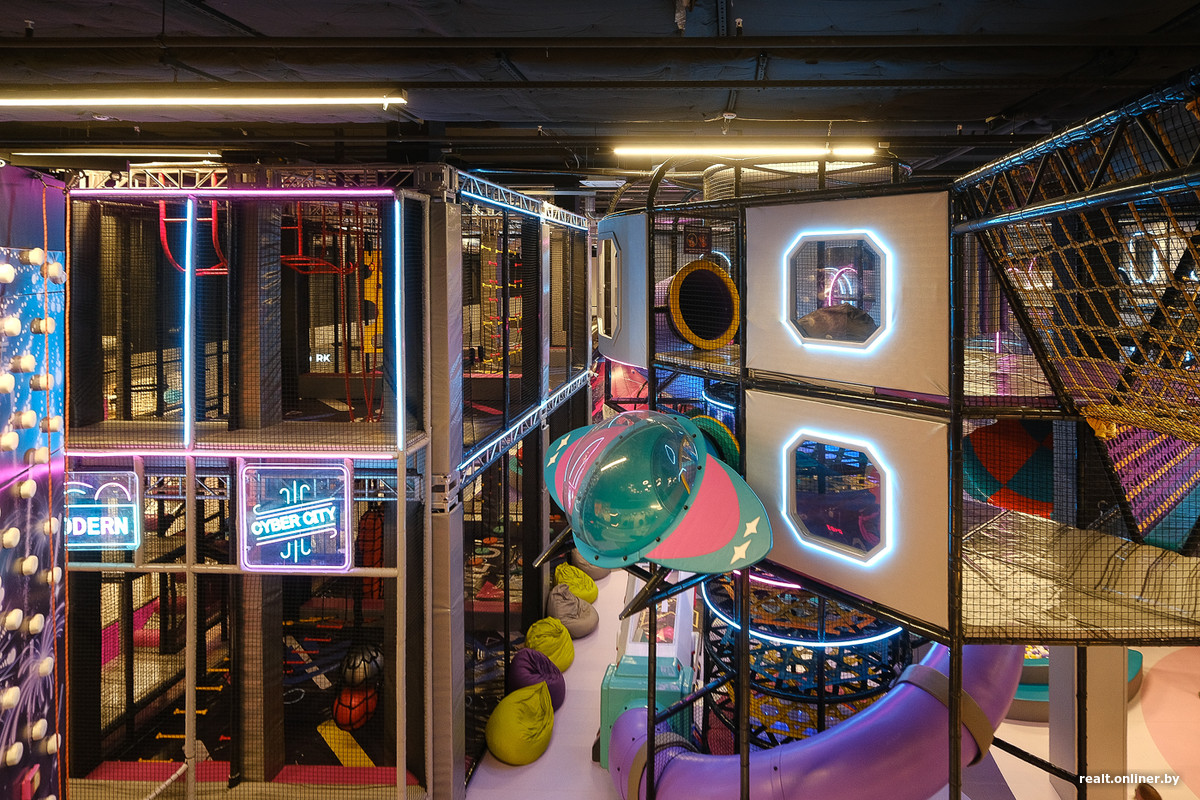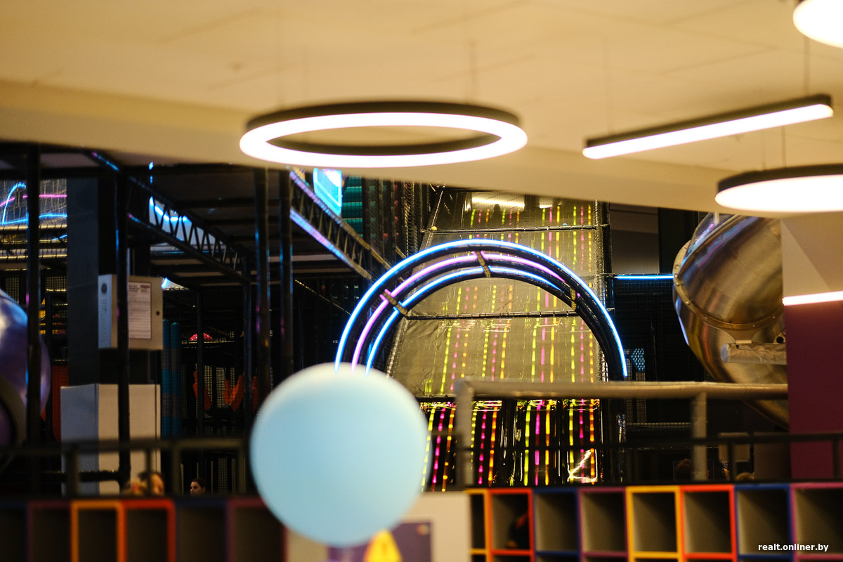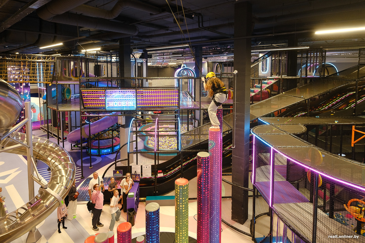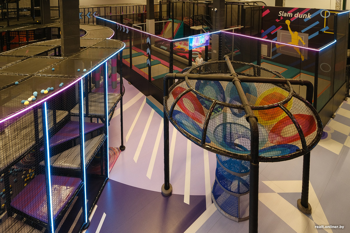 — Концепция уникальная. До сих пор никто в Беларуси не открыл схожий объект. Мы предлагаем только активные аттракционы, на которых дети должны бегать, прыгать, развлекаться. Аппаратов, где надо «нажимать кнопочки», у нас просто нет. В среднем дети проводят в активити-парке четыре-пять часов, — показывают свое детище представители ТРЦ.