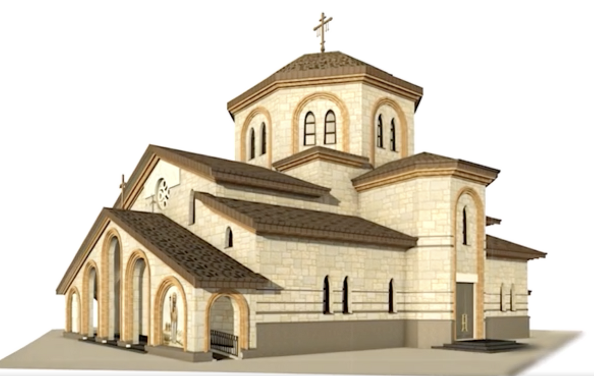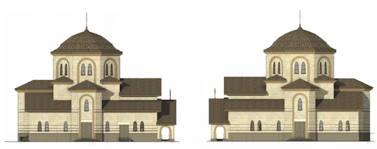 Центральная часть спроектирована как четырехгранник, переходящий в восьмигранный световой барабан, завершенный плоским куполом. Проектом предусмотрена облицовка фасада природным камнем. С двух сторон западного фасада будет установлен каменный поклонный крест и мозаика образа святой равноапостольной Нины.