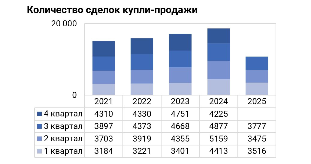 За третий квартал 2025 года в Минске зарегистрировано 3,8 тысячи сделок купли-продажи квартир. В июле и августе совершено по 1,3 тысячи сделок, а сентябрь стал самым спокойным месяцем в году после января — 1067 сделок.