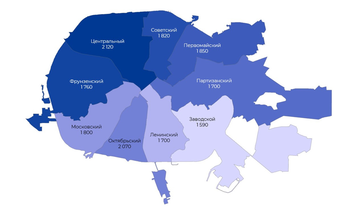 В наименее активном по количеству сделок Партизанском районе совершена 151 сделка. Самый дорогой район Минска — Центральный, средняя цена за квадратный метр здесь увеличилась.