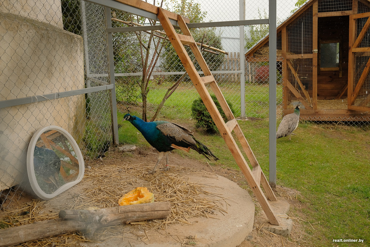 Чуть позже на участке появилась готовая банька, пару хозпостроек, деревянные домики для павлинов, волчаков и кур. О том, как такая экзотика поселилась в Самохваловичах, женщина вспоминает с улыбкой, называя всё «стечением обстоятельств»: