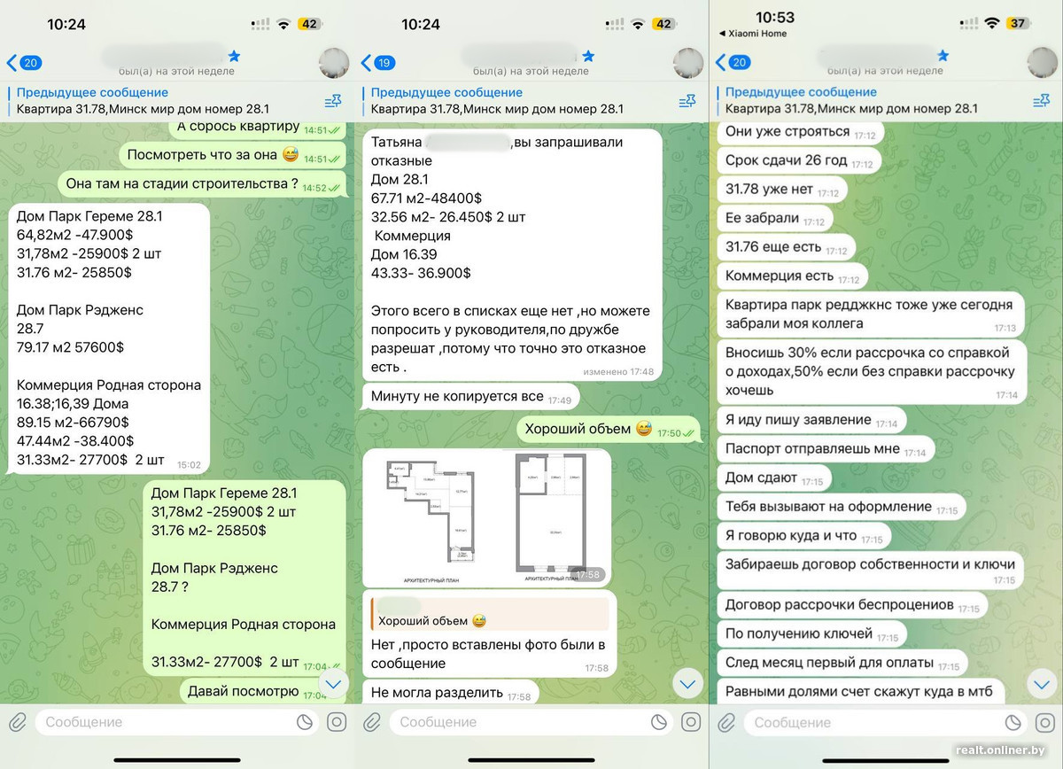 Позже в списке «скидочных» предложений появились путевки за границу — отдых на Мальдивах или в Японии стоил в разы дешевле рыночных цен. А затем в ход пошли машины и квартиры: по версии Татьяны, компания распродавала служебный автопарк и жилье «по себестоимости» для своих сотрудников. Люди передавали задатки наличными, часто без расписок и через родственников Татьяны, и ждали, пока достроят дом или привезут автомобиль. Но ни машин, ни квартир они так и не увидели. Как рассказывали нам пострадавшие, в закрытом чате находилось более двухсот человек, обманутых Татьяной на сотни тысяч долларов.
