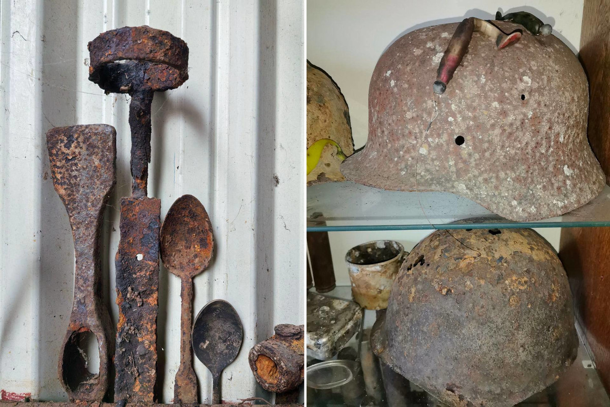 Среди трофеев — старые коньки, военные шлемы, ржавые ложки, солнцезащитные очки и даже фотоаппарат. Но настоящий хит — коллекция кнопочных телефонов. За обладание таким раритетом зумеры точно подрались бы — конечно, если бы устройства не были «утопленниками» и могли делать классные замыленные снимки. А так остается только на полку поставить да ностальгировать по эпохе, которую они даже не застали.