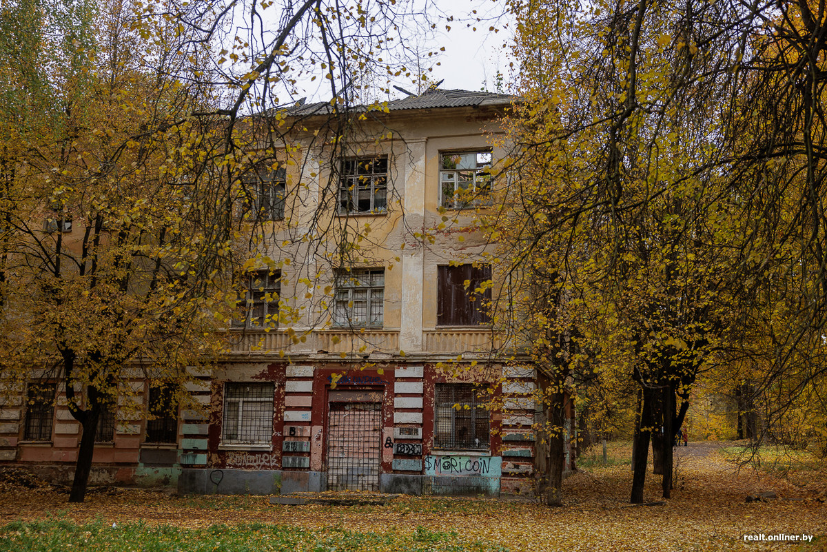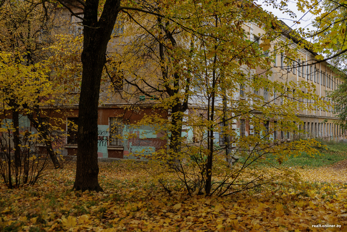 Осматривая большие стройки, мы отошли на несколько сотен метров в сторону, за улицу Голубка. Интерес был такой: посмотреть, не унесли ли с собой перемены те постройки, которые использовались «Шталагом 352» — лагерем для военнопленных во времена Великой Отечественной. Главный ориентир тут — бывшая казарма по Лынькова, 111г и несколько соседних зданий. Все на месте. Казарма стоит законсервированная. Вероятно, когда округу украсит новый район, внимание дойдет и до этих исторических построек. Подходящий момент для сохранения памяти.