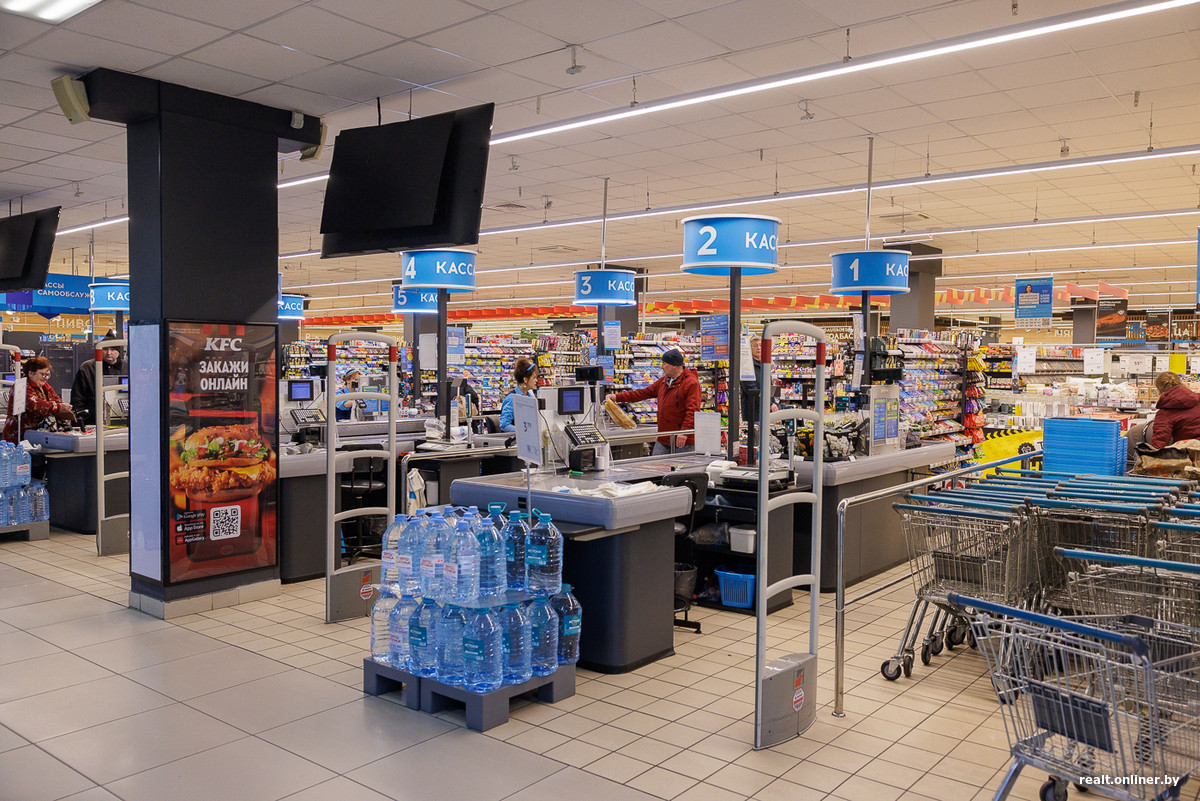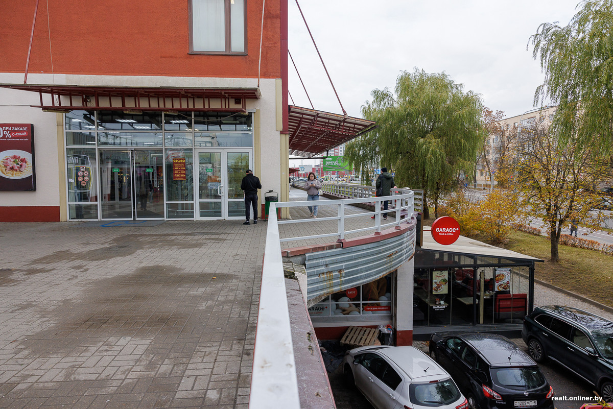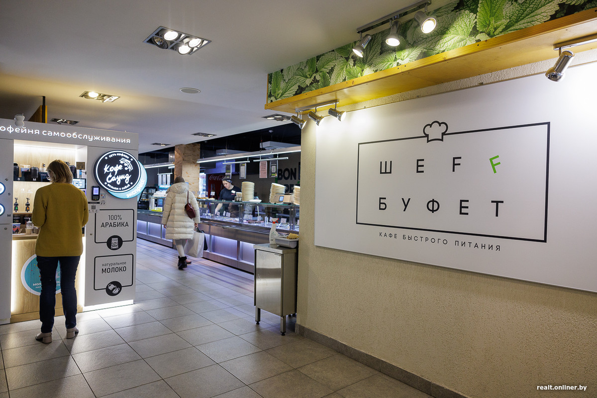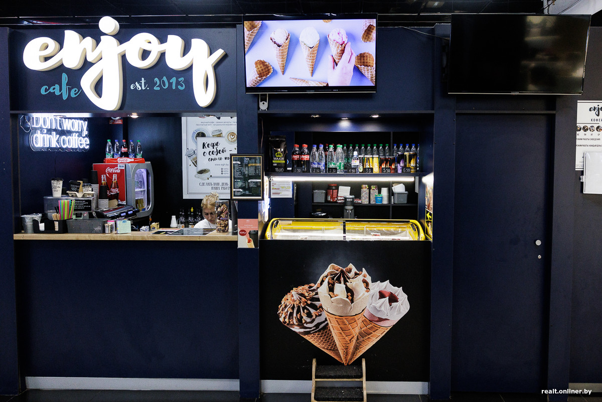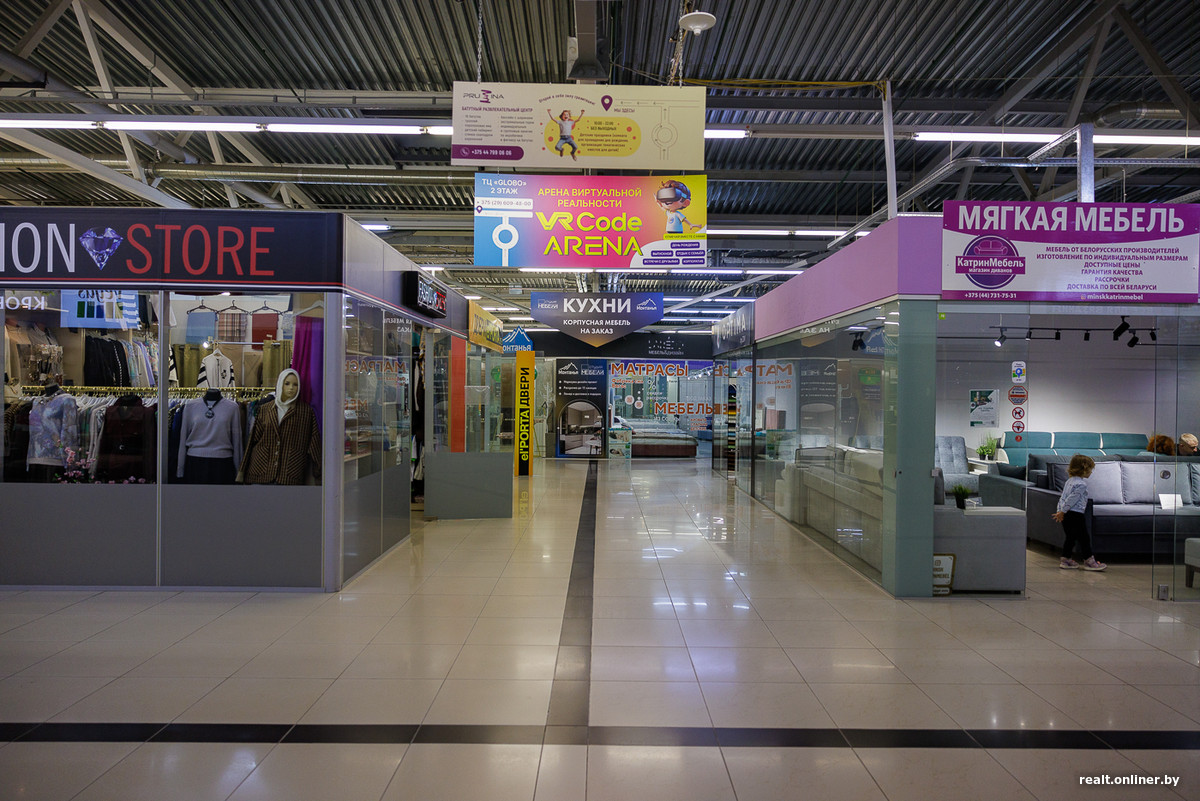 Снаружи «Титан» выглядит внушительно: стеклянный фасад, офисные башни и аж шесть входов, в которых можно запутаться, если приходишь сюда впервые. На первом этаже всего понемногу: дорогим блеском манит Ziko, приятными ароматами — «Кравт», сумками — бренды Less и Makey. «Евроопт» без покупателей тоже не остается, да и в другие магазины люди заглядывают: кто-то выбирает текстиль в «Белорусском льне» или Samsara, кто-то развлекается с демонстрационными образцами смартфонов в «5 элементе». В кофейне «Булочки» несколько девушек балуют себя капучино и десертами. Кажется, жизнь здесь и правда теплится. Хотя местные продавцы едва ли с этим согласятся.
