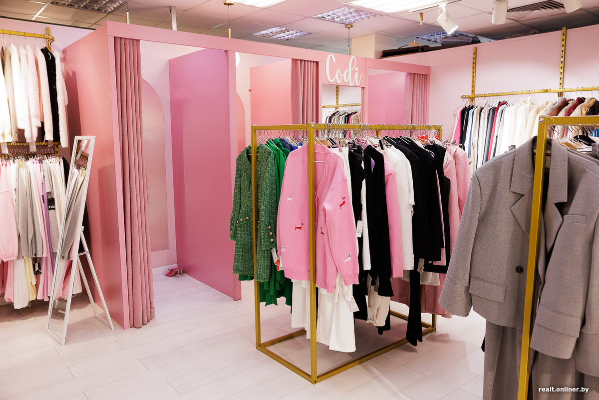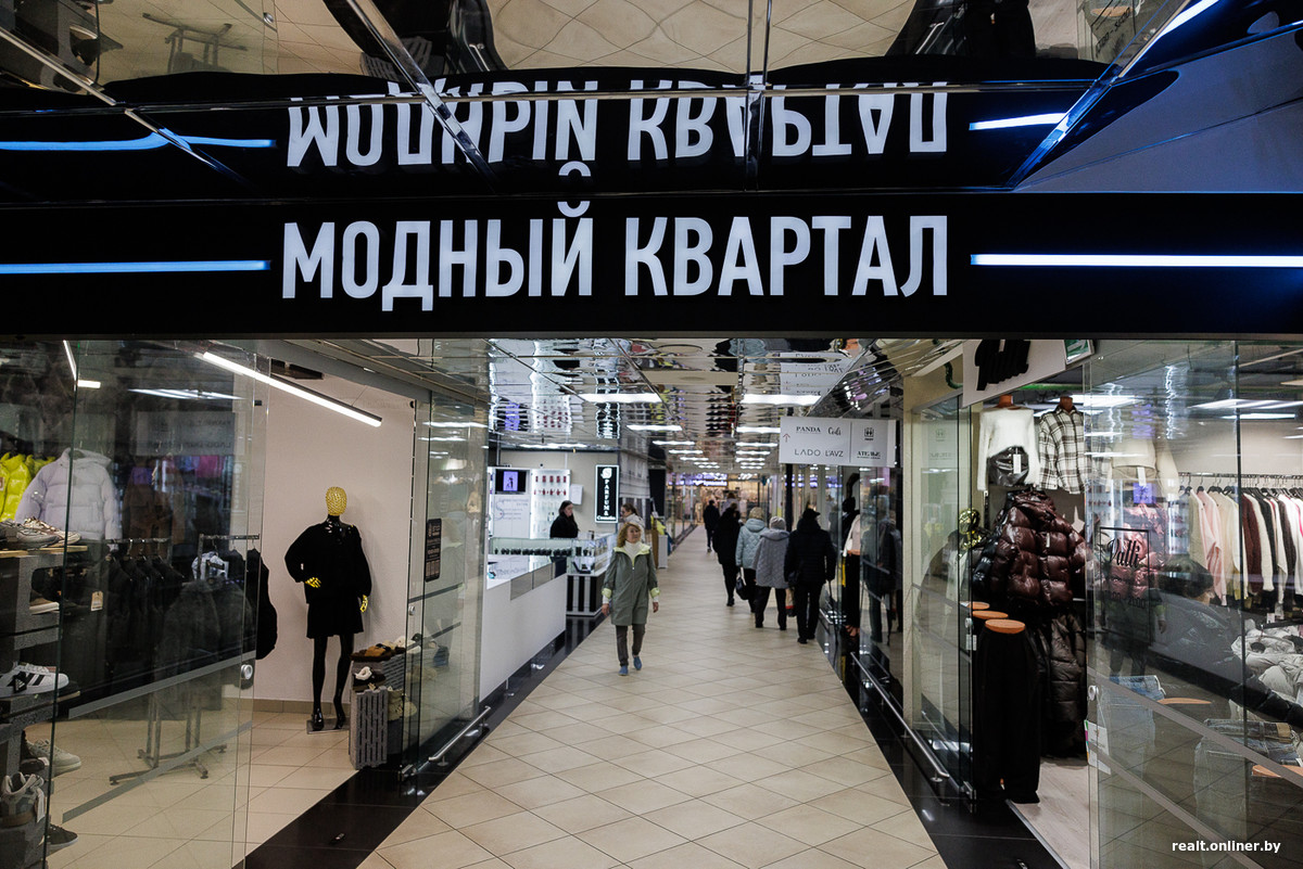 Заглядываем в один из шоурумов — как оказалось, одежды белорусского производства. Нас встречает консультант Анастасия и сразу же сбивает с ног новостью о том, что скоро магазин переезжает в другое место: