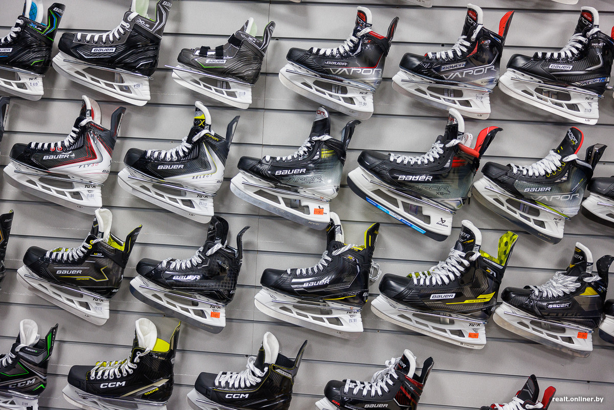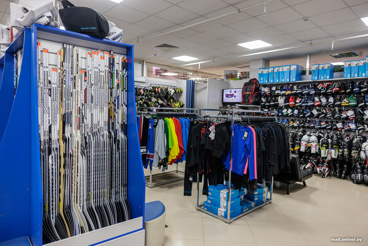 Добираемся до магазина с хоккейной атрибутикой, где за прилавком скучает Евгений.