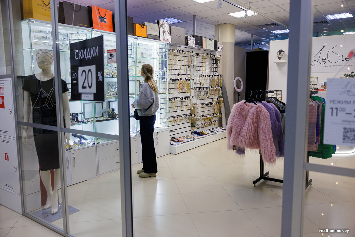 — В последнее время проходимость небольшая. Все из-за перепланировки, которую затеял торговый центр. Раньше с одной стороны на второй этаж был вход со стороны «Евроопта» — люди шли за продуктами и сразу поднимались наверх. Потом его закрыли, а супермаркет перенесли чуть дальше — и все, посетителей стало заметно меньше. На это жалуются почти все продавцы. Нам повезло: у нас много постоянных клиентов — за семь лет уже заработали себе имя. Поэтому сильного падения выручки не ощущаем. Лучше спросите у продавцов, которые в крайнем ряду стоят, — мне кажется, до них вообще никто не доходит.