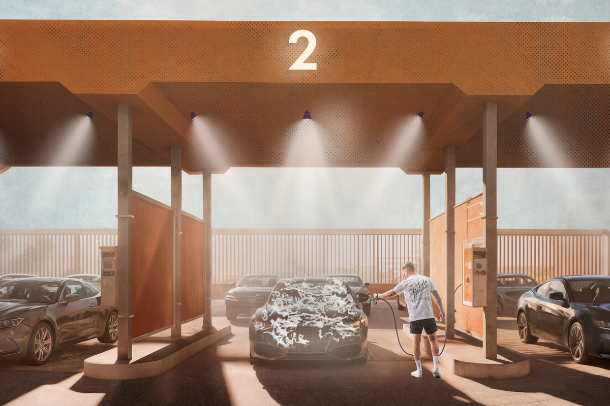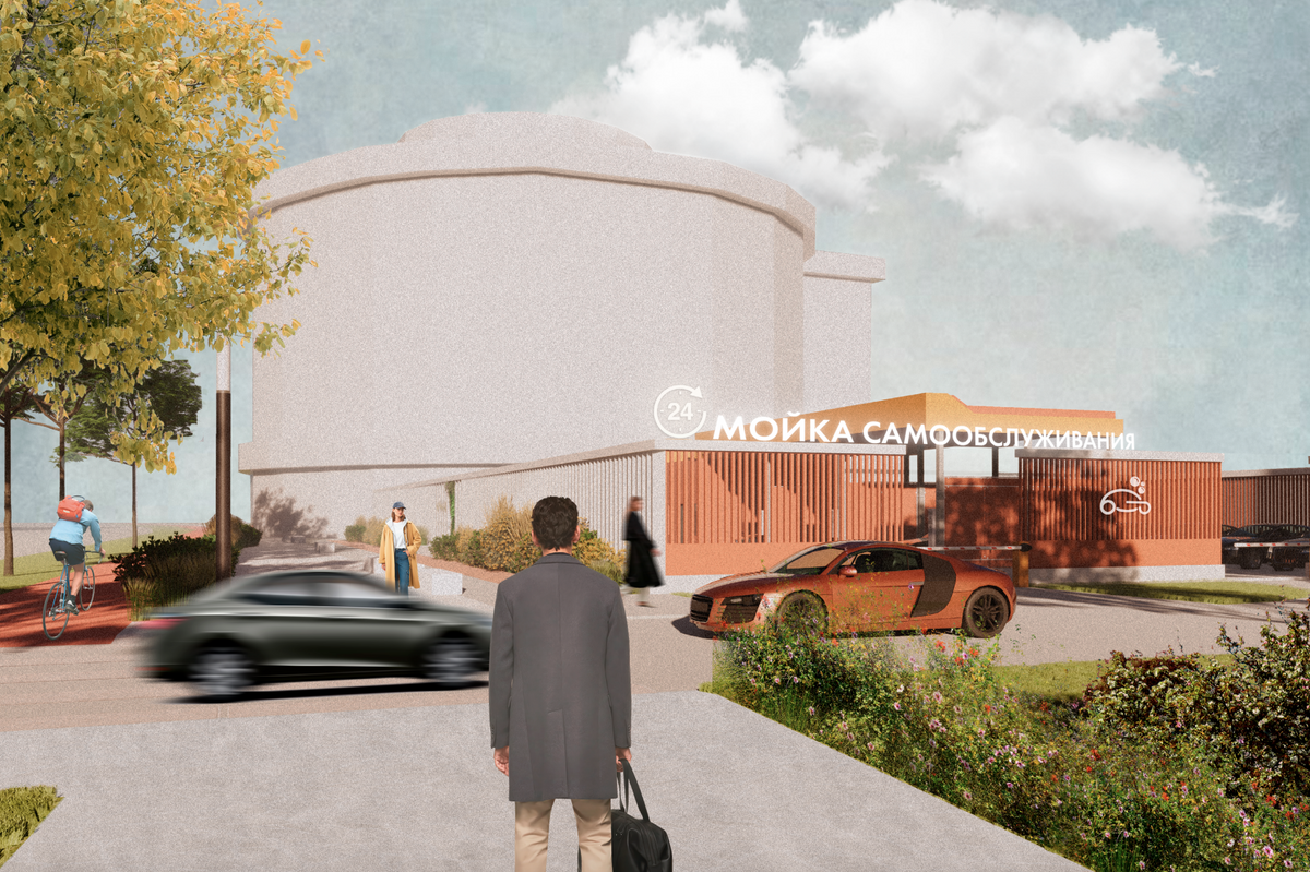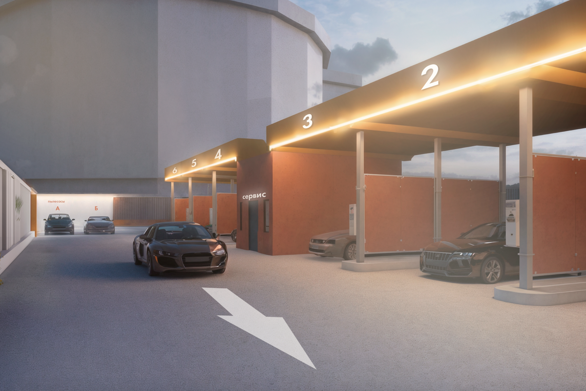 Проект получился довольно стильным. Несмотря на незамысловатую функцию мойки, ее сделали стильной и современной. Судя по рендерам, на фасадах появится вертикальное озеленение, а вокруг оборудуют прогулочную зону. Разработчики проекта объясняют: