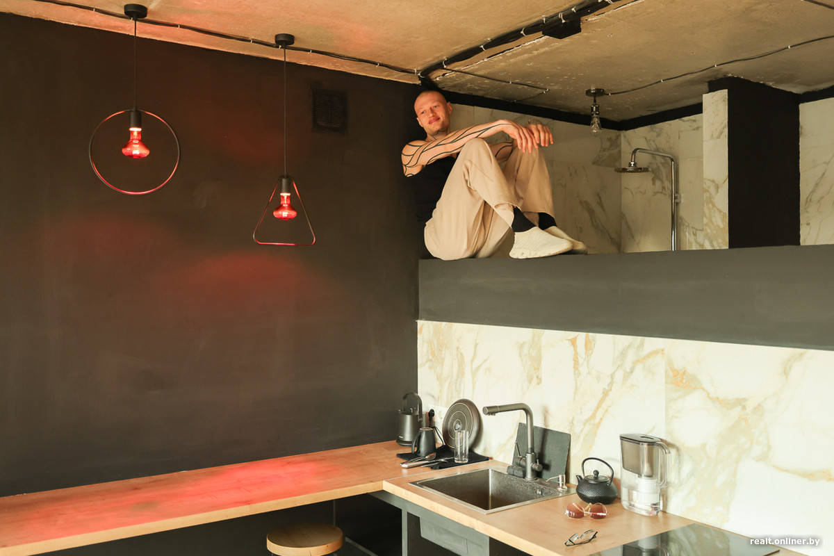 — Почему я открыл ванную? Блин, я не знаю. Однажды видел такой открытый санузел на Бали. Понятно, что там это продиктовано климатом, а в Беларуси так делать не принято. Отец спрашивал, как же я буду приводить друзей, девушек? Сестра тоже говорила, что открытый санузел — это неуместно. Но я на это забил, ведь только я являюсь хозяином своей жизни.