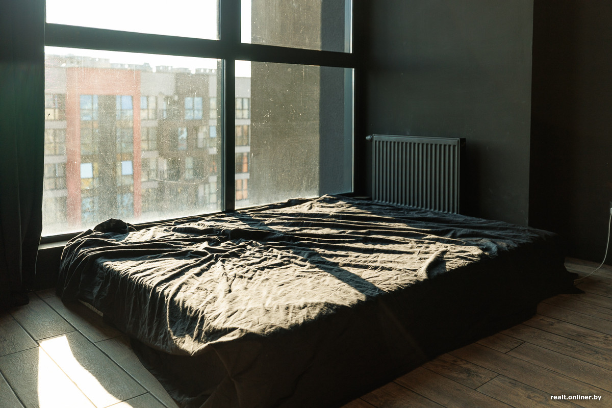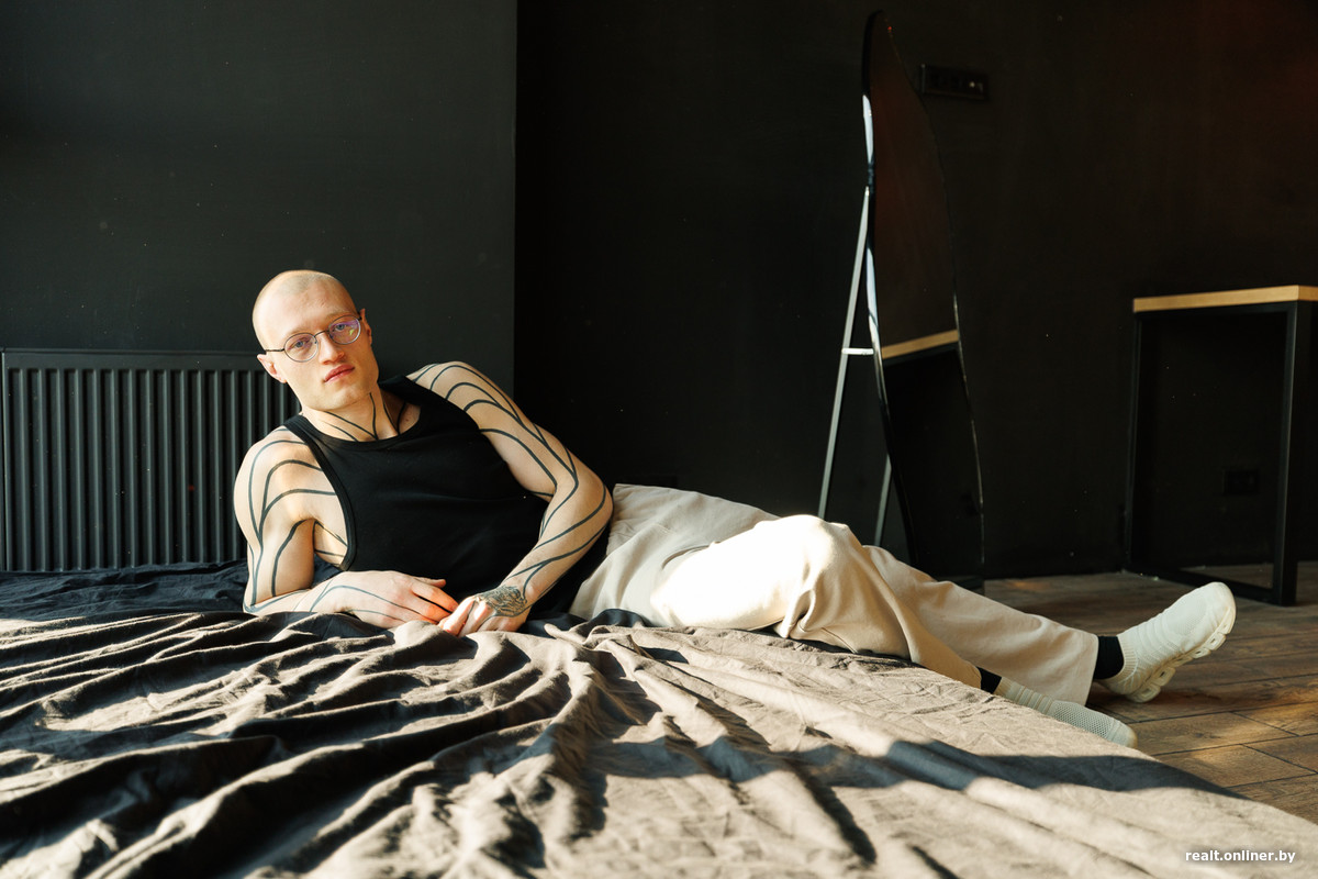 Высокий и харизматичный молодой человек встречает нас в своей квартире в «Минск-Мире». Это типичная для данного квартала малогабаритка. Комната залита солнечными лучами из панорамных окон, поэтому главенствующая здесь чернота не смотрится мрачной.