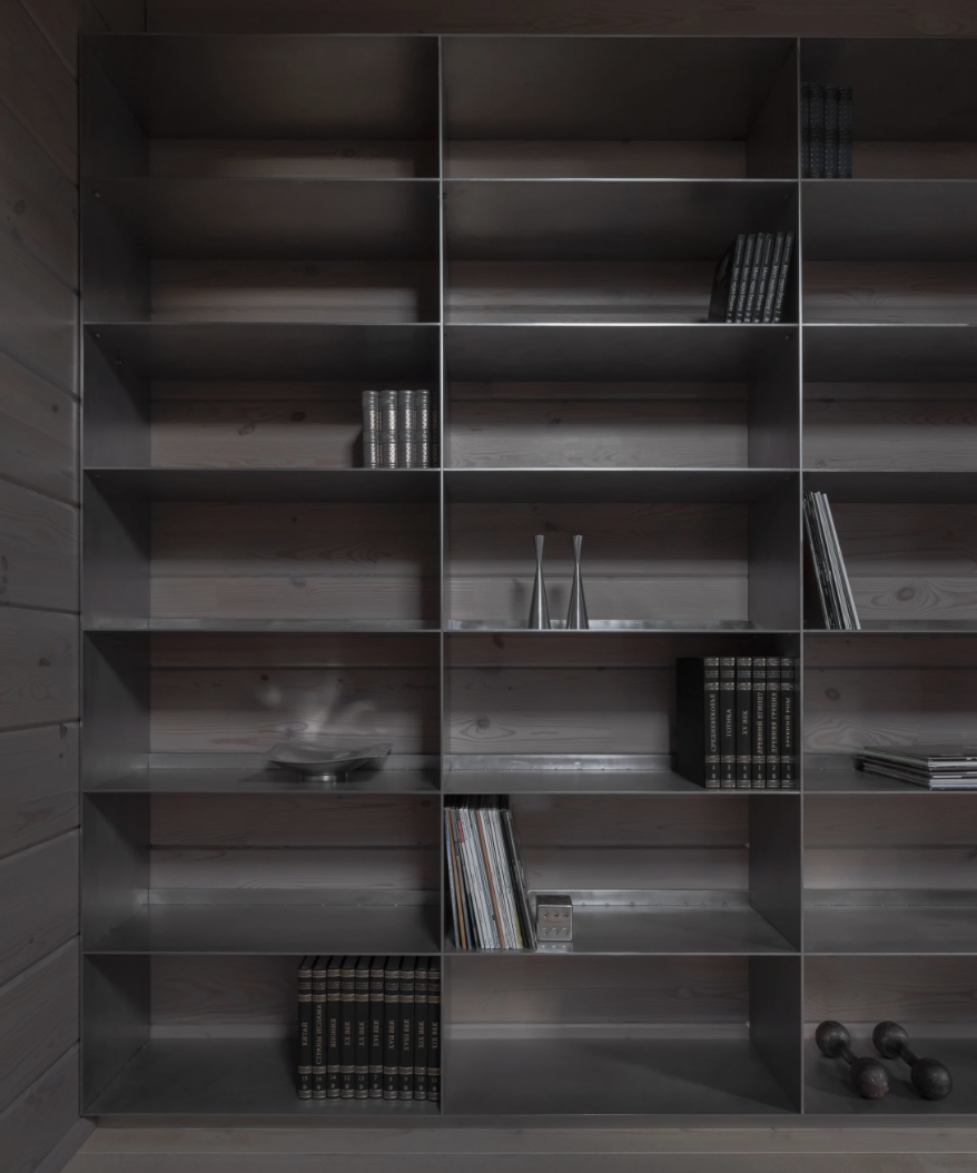 — Пространство было организовано для взрослой семейной пары, которая ведет размеренный образ жизни за городом. Они любят баню, прогулки, долгие ужины с близкими, кулинарию, занимаются коллекционированием винила и книг.