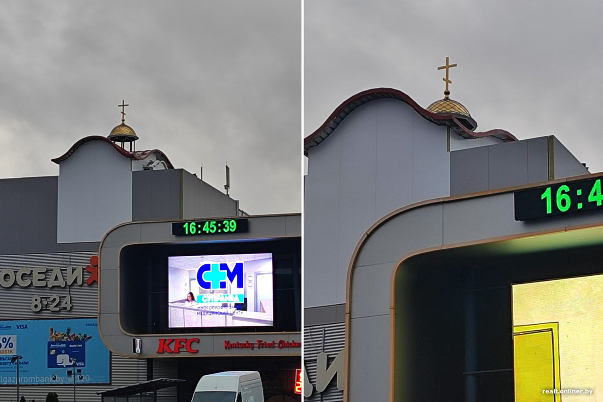 Отметим, что в Минске не так много религиозных пространств внутри коммерческих комплексов. Один из примеров — храм в честь Святого Иоанна Кронштадтского, функционирующий в ФОК «Атлант» на улице Саперов, 5.