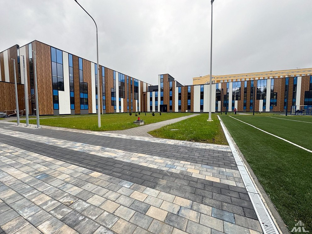 Здание выполнено в экостиле и расположено в дубраве «Щомыслицкая». На территории обустроены стадион, спортивные площадки, беговые дорожки и уличные тренажеры.