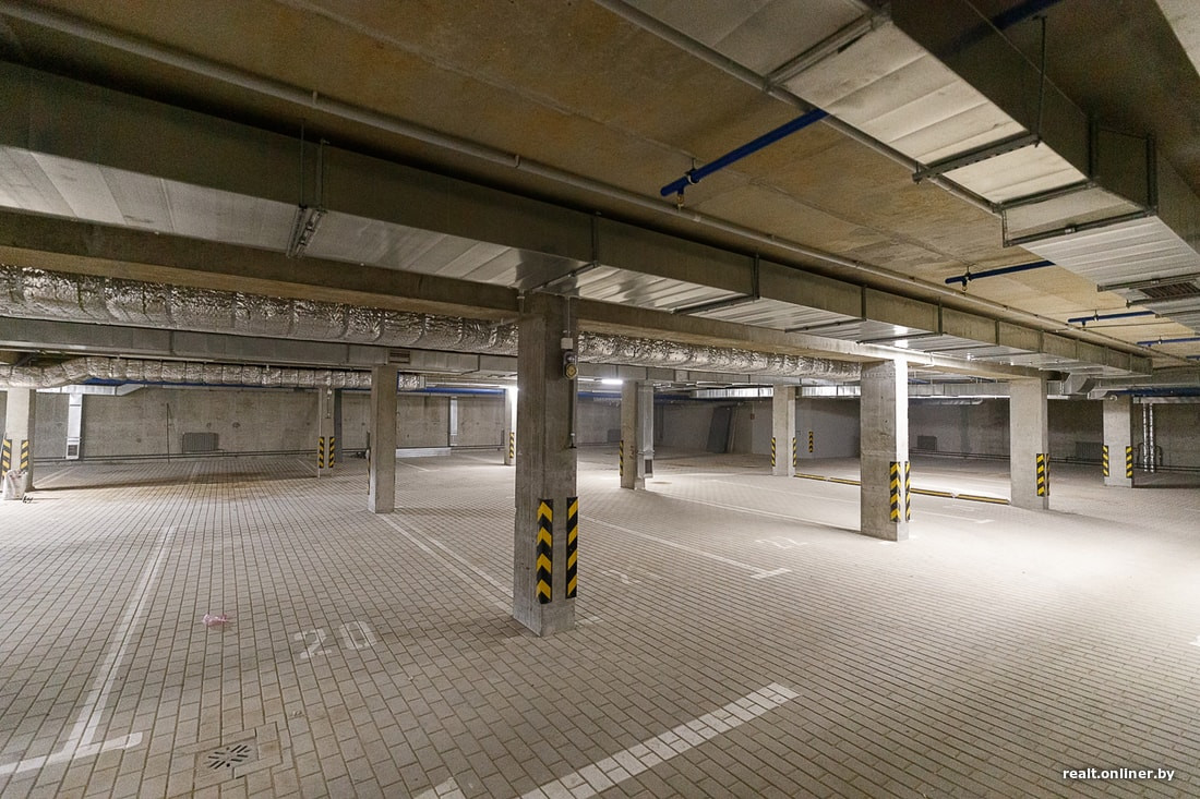 Под домом предусмотрен двухуровневый подземный паркинг — это тоже признак премиальности. Детская площадка выглядит довольно стандартно.