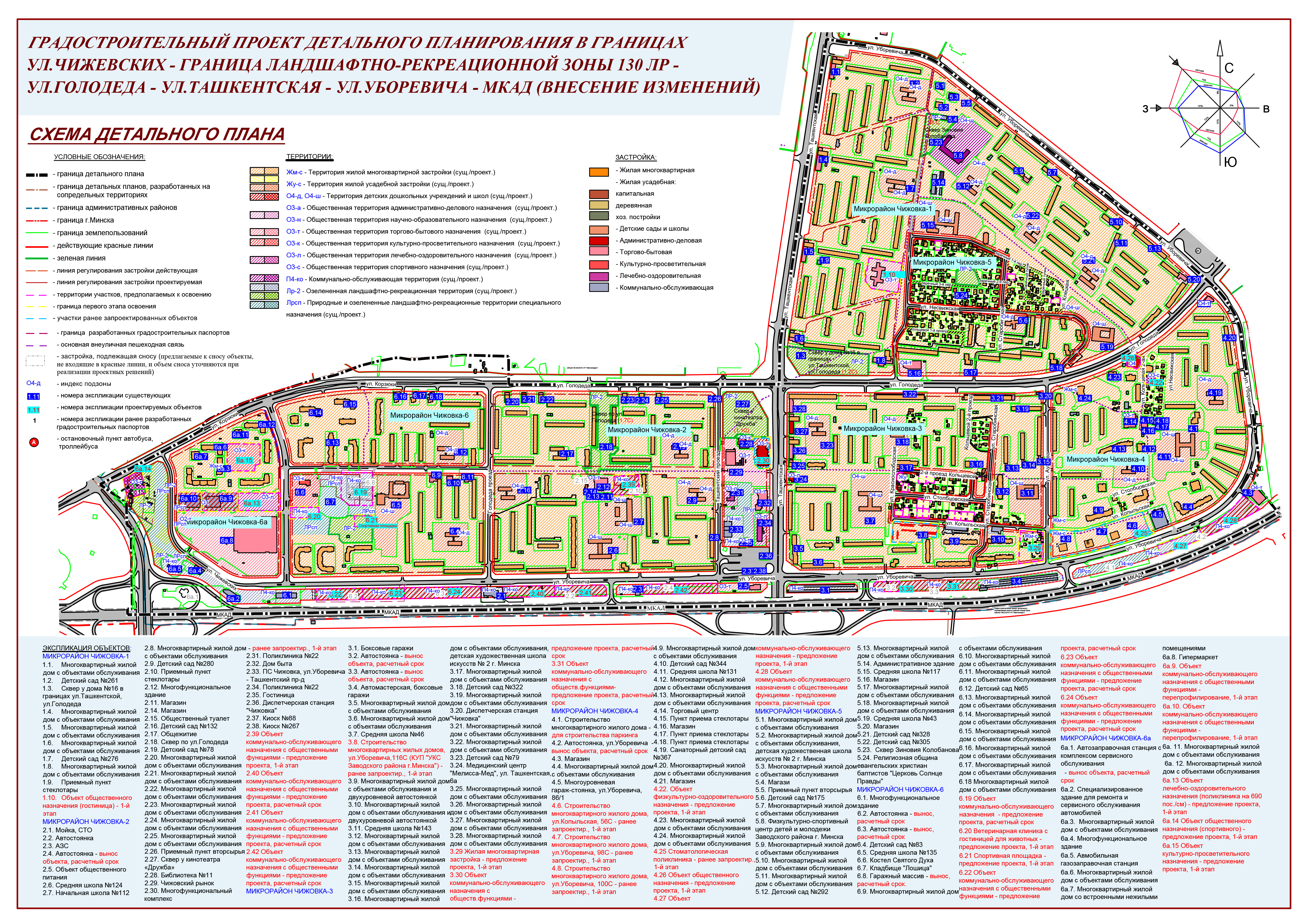 Изменения могут коснуться довольно большой территории в границах улицы Чижевских, ландшафтно-рекреационной зоны 130 ЛР, улиц Голодеда, Ташкентской, Уборевича и МКАД. В проекте уточняются границы участков и их назначение, а также предлагаются новые варианты застройки: немного жилья и очень много социальных объектов.