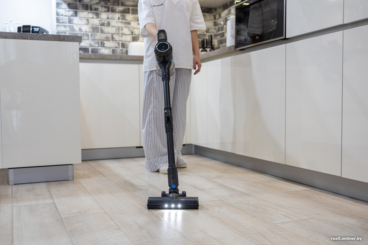 Несмотря на свою стоимость произвел приятное впечатление во время нашего обзора. Конечно, ждать чудес не стоит — эффективно пылесосить ковры, как классический напольный пылесос, он не сможет. Но при этом вполне достойно справляется с уборкой мусора на твердых поверхностях, а также имеет хорошую продолжительность работы от аккумулятора и подсветку рабочей зоны.
