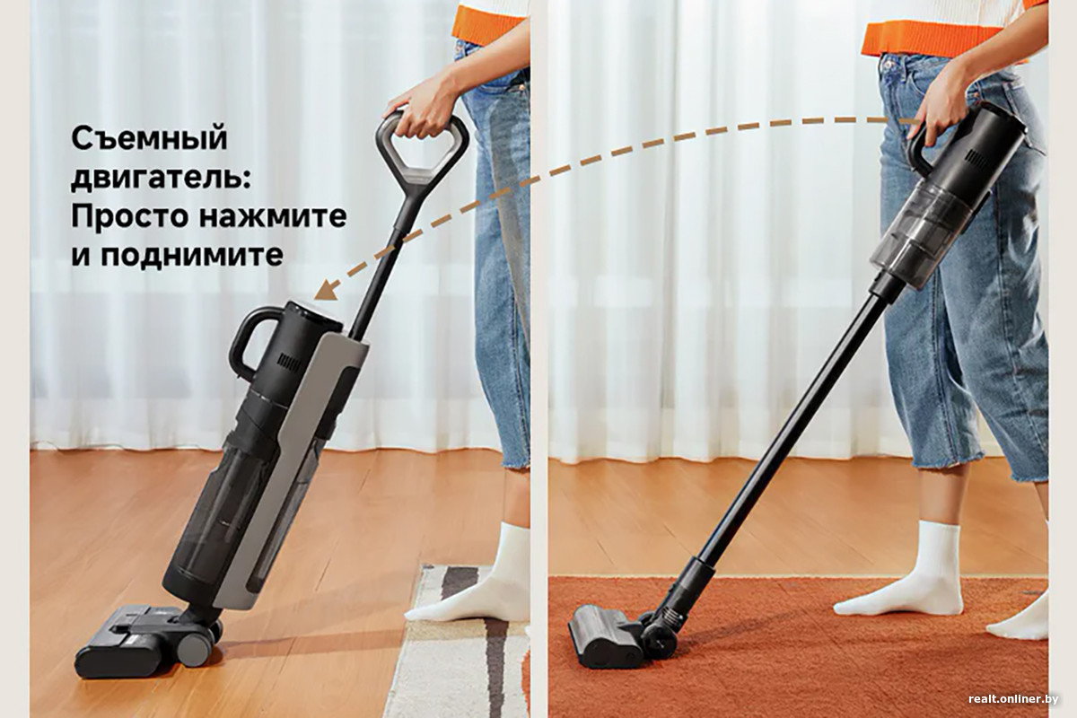 Вертикальный 2 в 1 — компромиссный вариант, состоящий из двух отдельных устройств: пылесоса для сухой уборки и моющего. Объединяет их только переставляемый моторный блок. Практика показала, что такие модели хорошо справляются с мойкой, но не всегда удобны при сухой уборке: конструкция многих моделей предполагает не самое удачное расположение мотора в сухой версии пылесоса. Если нет острой необходимости в функции мойки пола, такой выбор вряд ли оправдан. В то же время по сравнению с отдельным моющим пылесосом такой вариант выглядит привлекательно.