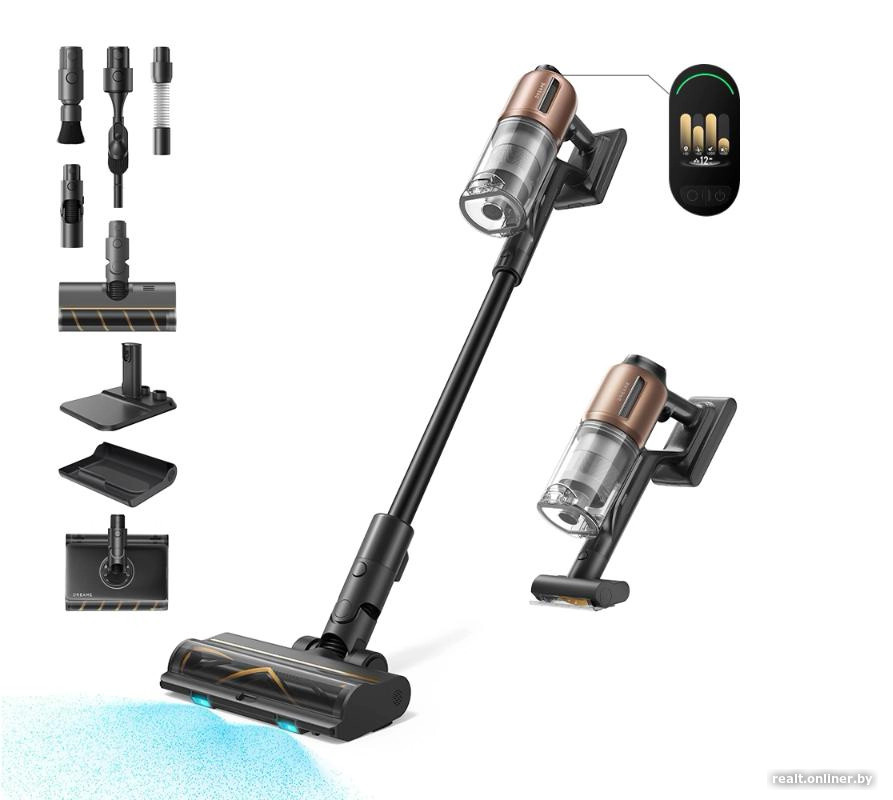 Обновленная версия популярного 2 года назад Dreame R10 Pro. Новая версия получила насадку для влажной уборки с двумя вращающимися швабрами и цветной дисплей, но лишилась электрощетки с мягким валиком и гибкой щелевой насадки. Стильный дизайн черного цвета, удачное обновление и приемлемая стоимость делают R10 Pro Aqua вновь актуальным.