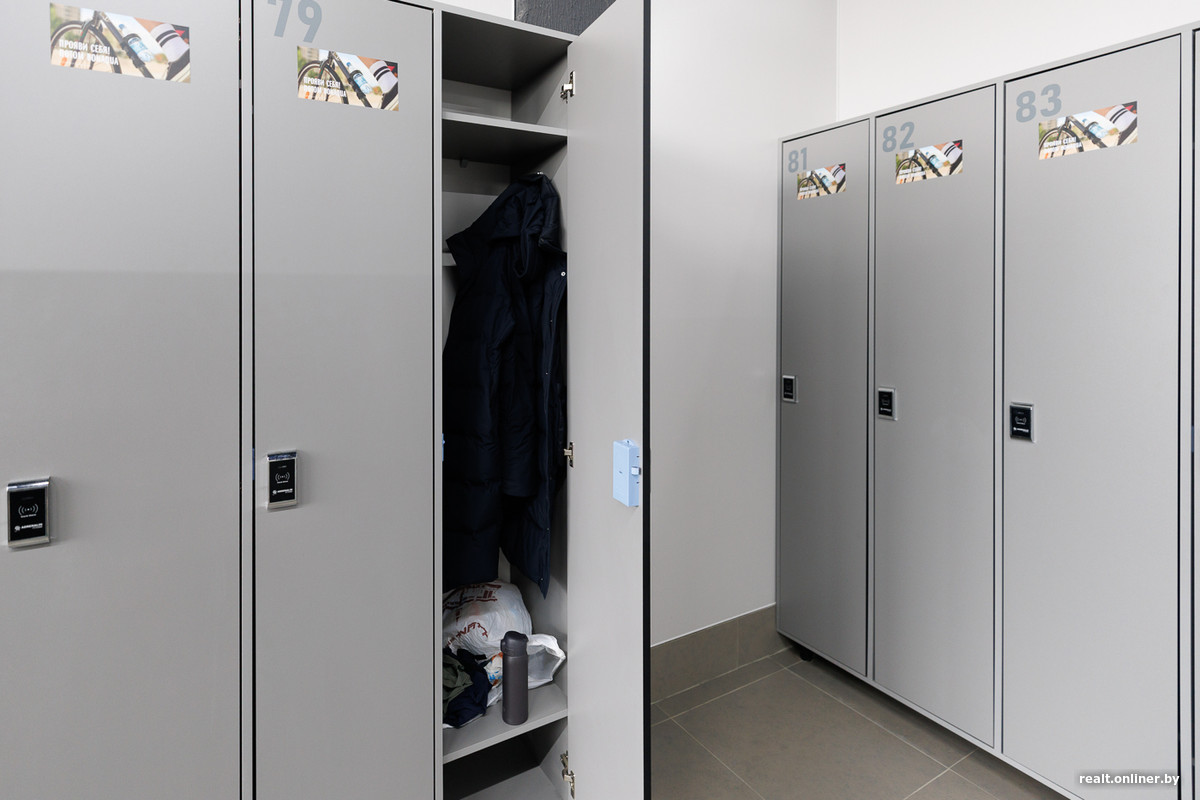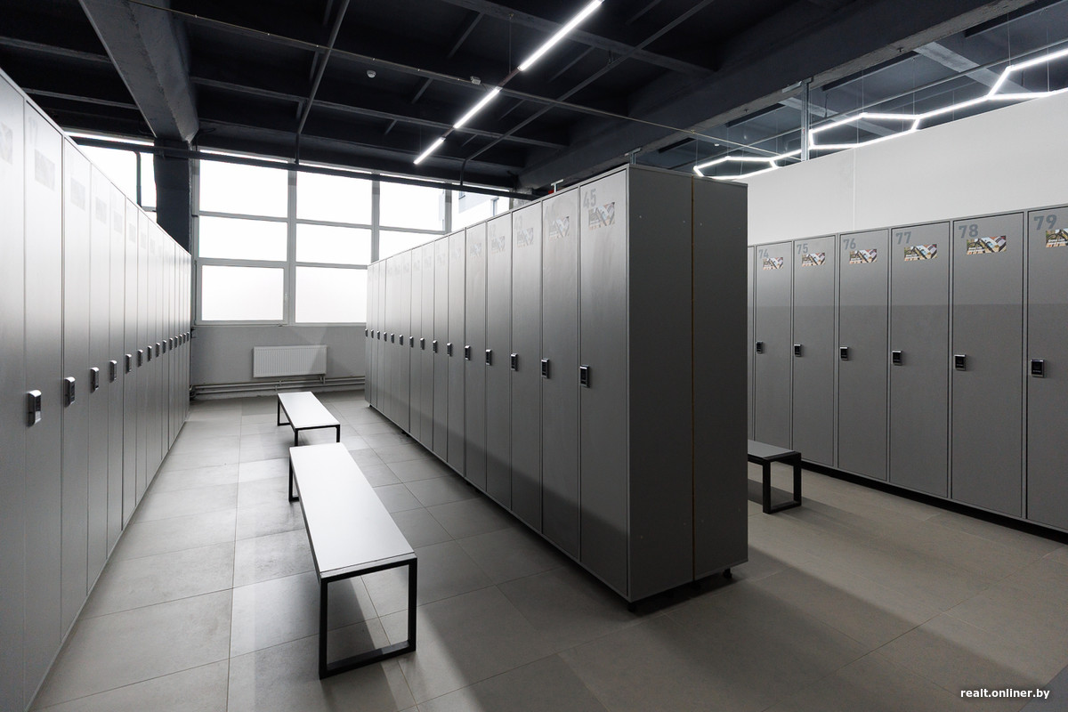 Раздевалки получились довольно просторными: в женской доступно 148 шкафчиков, в мужской — 100. Как отметил директор фитнес-клуба, при необходимости вместительность раздевалок можно расширить — площади позволяют это сделать. Кстати, многие привыкли, что в сети «Адреналин» после занятий можно расслабиться в сауне. Однако тут ее установить не получилось из-за специфики заводского помещения.