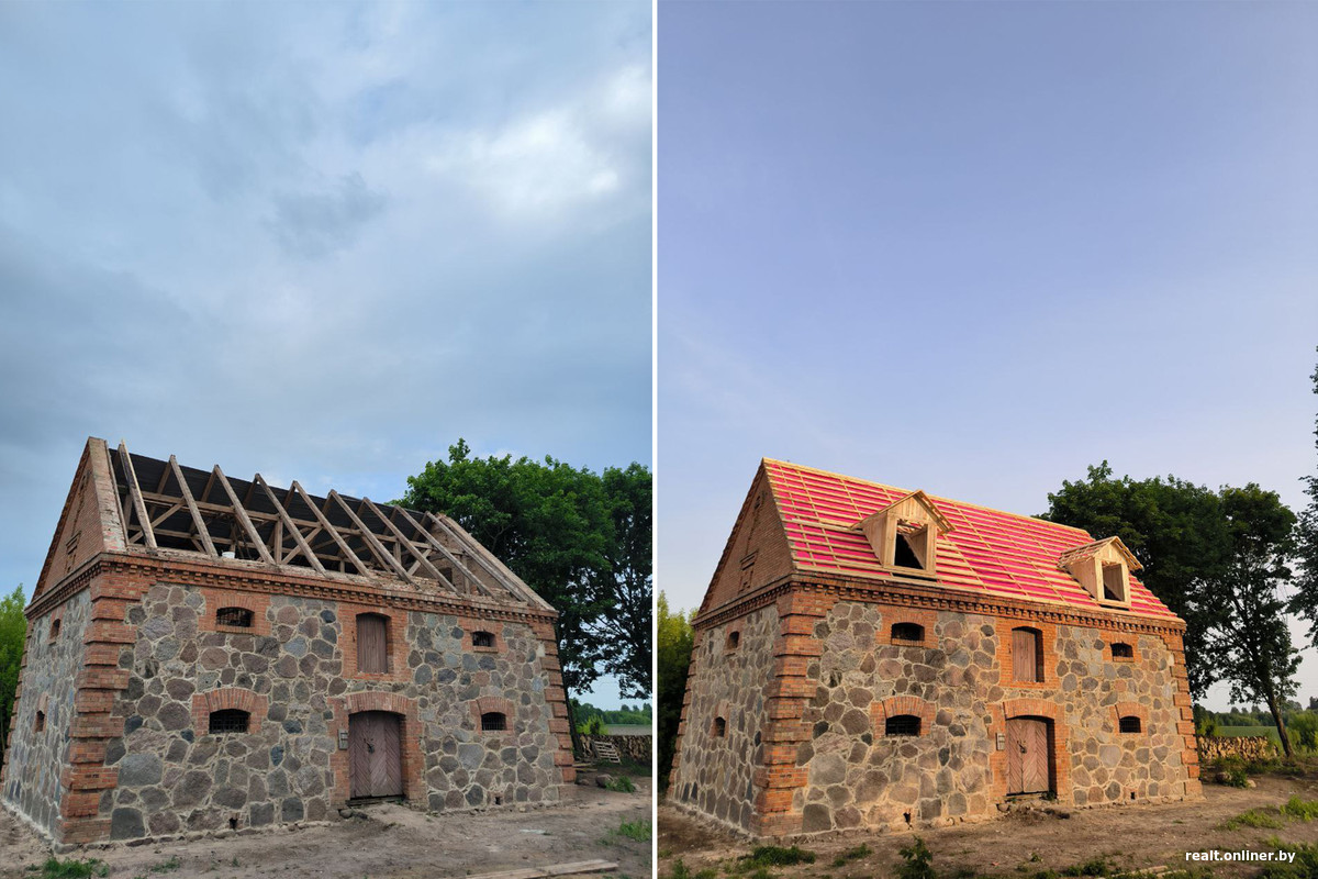 На этом старинном амбаре значится дата постройки — 1907 год. Вокруг — деревенская тишь. Дорога из Минска сюда занимает более трех часов. Казалось бы, чем может быть привлекателен такой объект? Однако Павел увидел в полуразрушенном здании не только перспективу, но и свою мечту. Вот уже около года он восстанавливает постройку, чтобы превратить ее в туристический гостевой дом, который будет сдаваться в посуточную аренду.