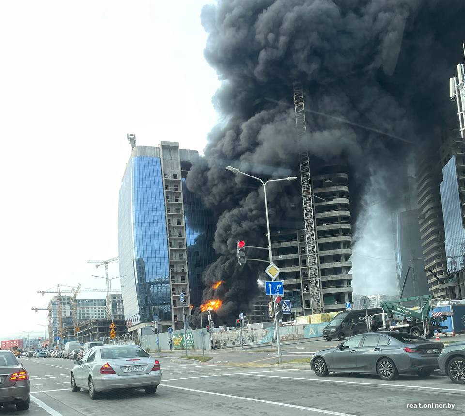 «Пахнет пластиком, в воздухе пепел летает». Пожар на стройке МФЦ в «Минск-Мире»