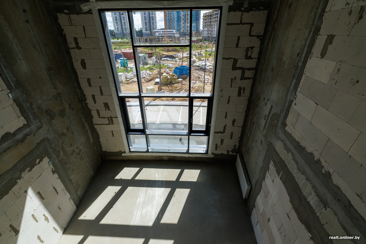 Планировки квартир сильно отличаются от тех, что мы привыкли видеть в «Минск-Мире». В каждой квартире есть антресольный этаж. Его площадь обычно не превышает 40% площади основного помещения. Здесь рекомендовано обустроить спальню или кабинет.