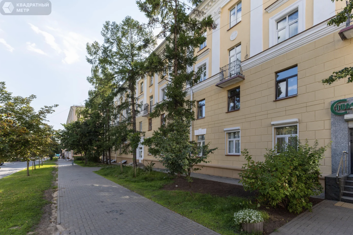 По адресу Румянцева, 15, стоит кирпичный дом 1956 года. Это бежево-белая сталинка с маленькими балкончиками и лепниной на фасаде. Капитальный ремонт здания был сделан совсем недавно — в 2025 году.