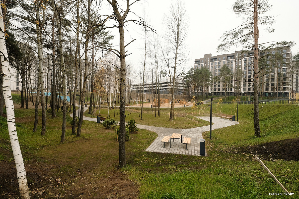 Во втором квартале жилого комплекса «Северный берег» появилась новая зеленая зона — «Форест Парк». Площадь территории — около 1,2 гектара. Парк открыт для всех: сюда могут приходить не только жители комплекса, но и остальные минчане.