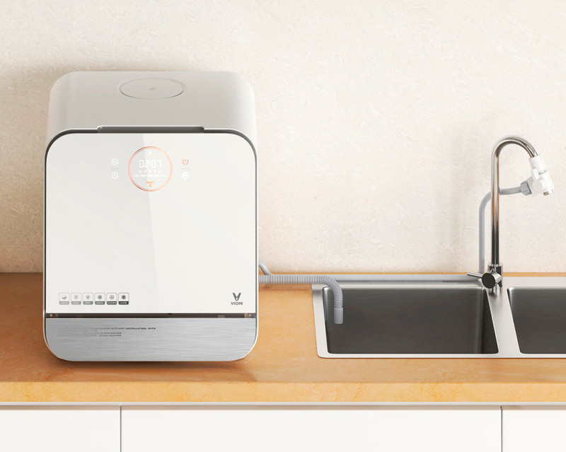 Компактная настольная посудомоечная машина, не требующая подключения к водопроводу: вода заливается вручную сверху. Имеет пять программ мойки: нормальная, экономичная, быстрая, дезинфекция и даже режим для мытья фруктов. Есть возможность удаленного управления через мобильное приложение MiHome. Отлично подойдет для небольших кухонь на съемных квартирах, а также как компромиссный вариант для дачи. Подробнее об этой модели вы можете почитать в нашем обзоре.