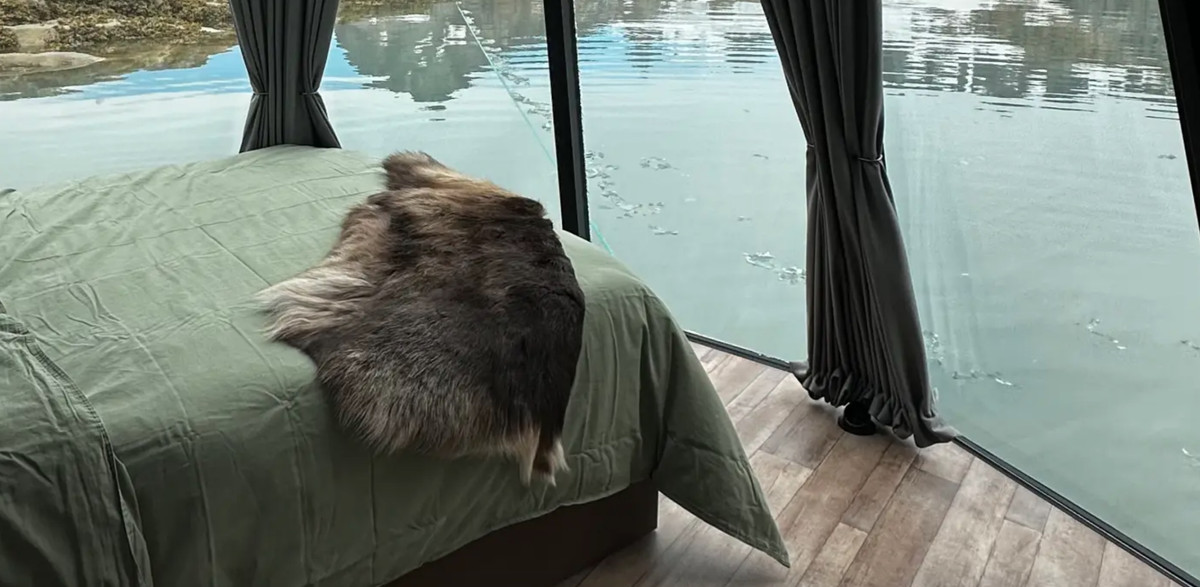 Деревенский образ жизни — вот главная тема этого спартанского жилья, добраться до которого можно только на лодке. Во время пребывания гостей хижина привязывается к берегу двумя веревками и якорем. В ней есть небольшая печь, одна кровать и компостный туалет, но нет душа. Интернета тоже нет. Единственным средством связи с внешним миром служит спутниковый телефон.